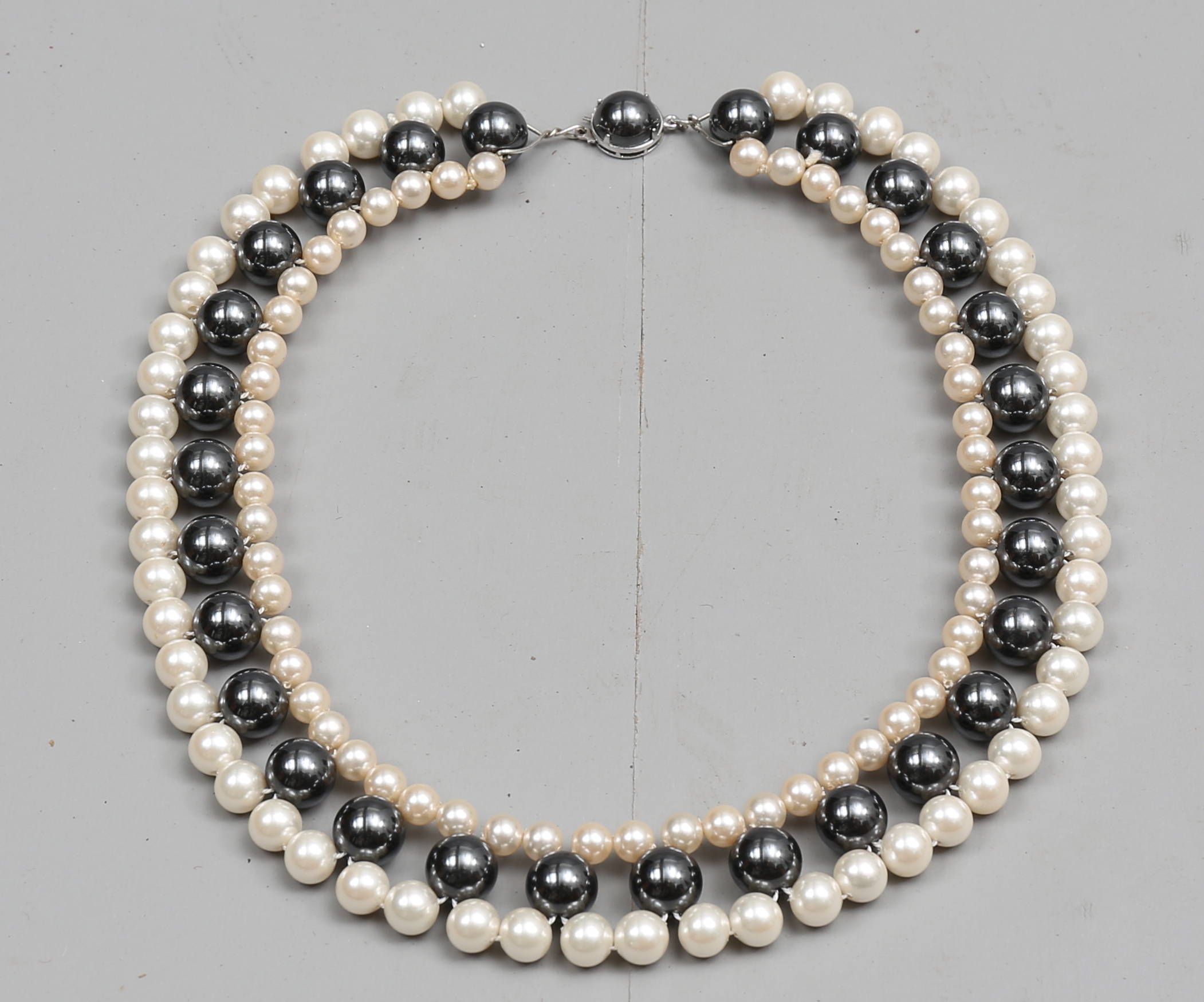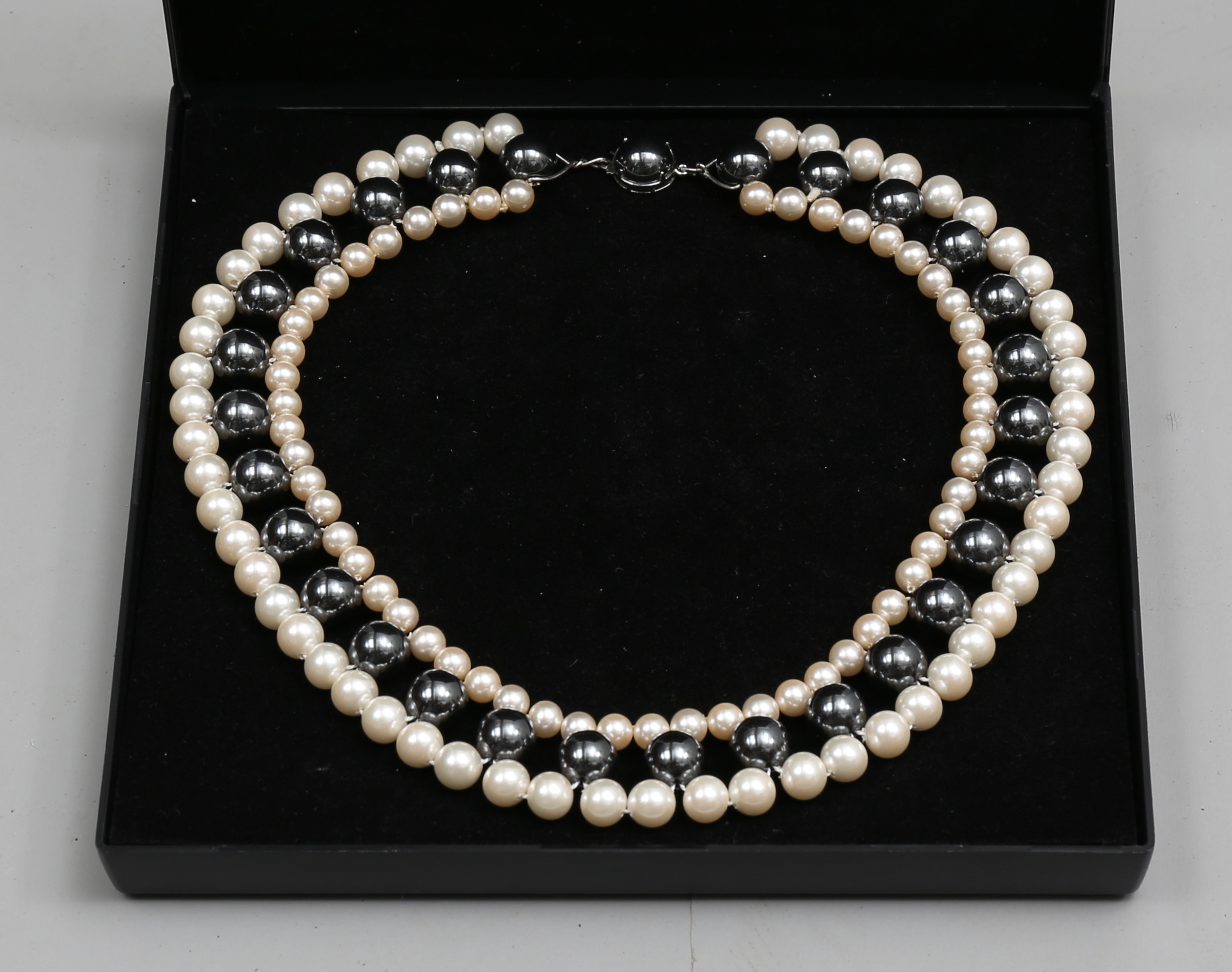 87250. HALSKETTE, Perlen, Hämatit, Verschluss in Silber.