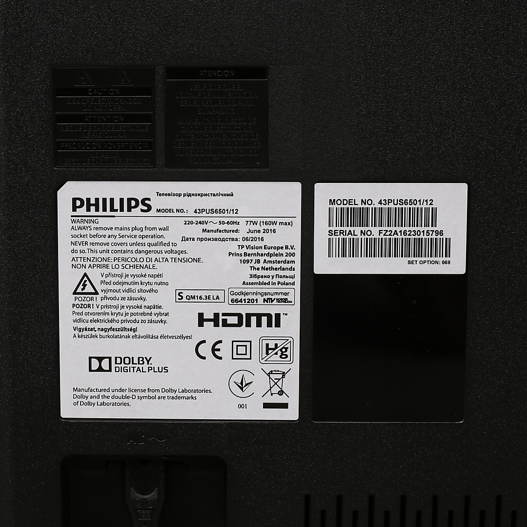873045. Fernseher, 43", Philips, 2016, 4K Ultra-HD, LED.