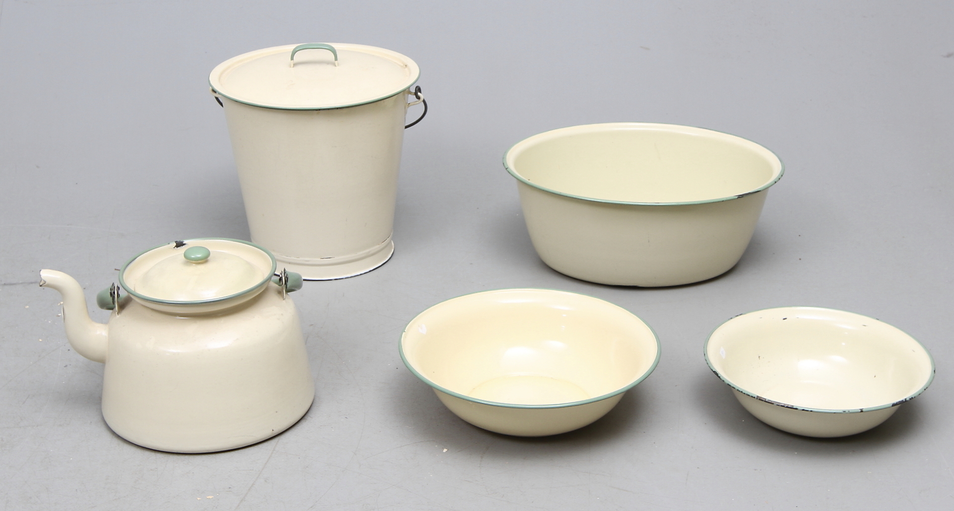 87769. EMAILLE, 5 Teile, Kockums, 20. Jahrhundert.