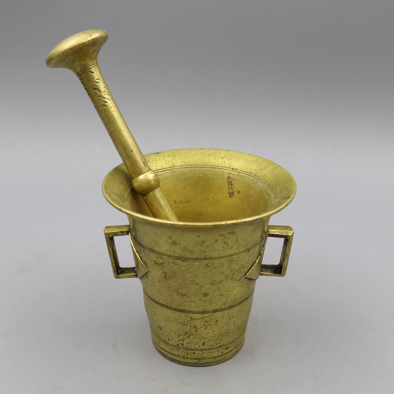 MÖRSER mit Schlag, Messing, 18/1900. Stempel Nr. 6.