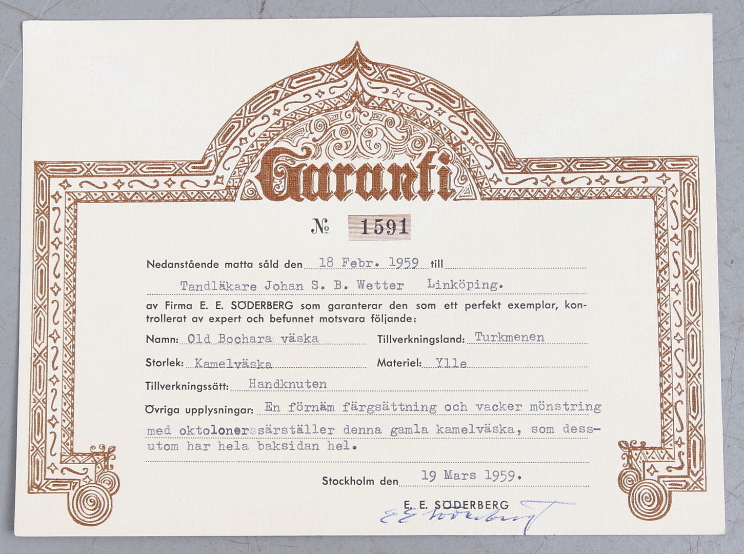 88712. KAMEL TASCHE. Alte Bochara, 165 x 100 cm.