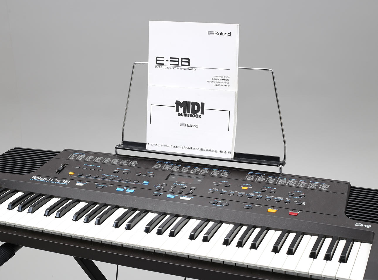 Roland E-38 Intelligent Keyboard mit Ständer und Bedienungsanleitung.