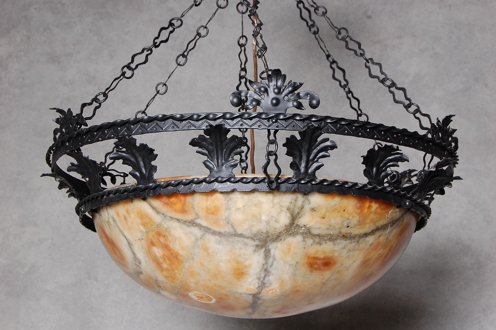 89850. DACHTAMPLE, Alabaster, erste Hälfte 20. Jahrhundert.