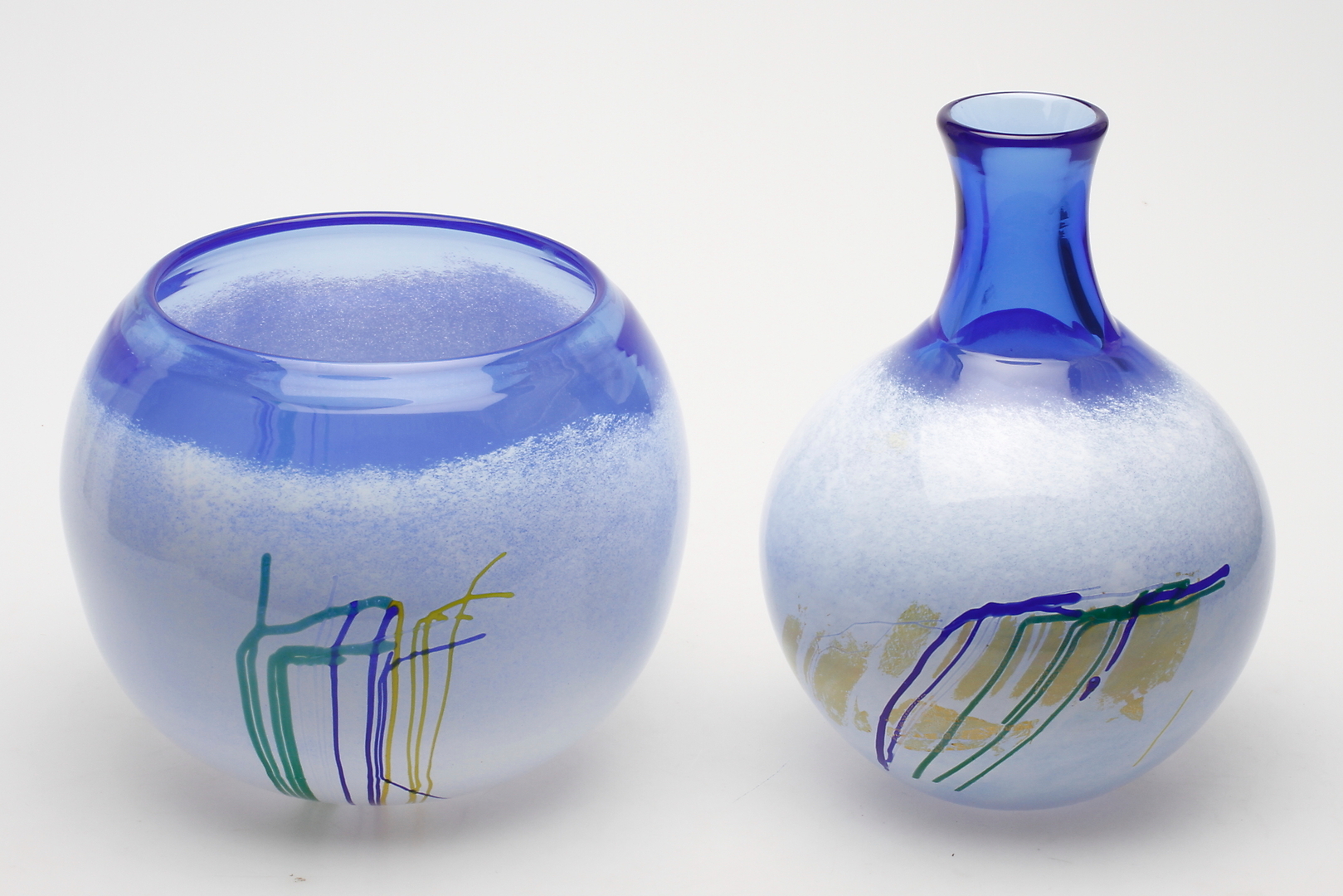90557. VASE und SCHALE, Glas, Schloss Steninge.