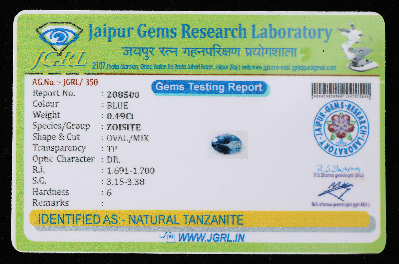 906144. TANSANIT, blau, 0,49 ct.