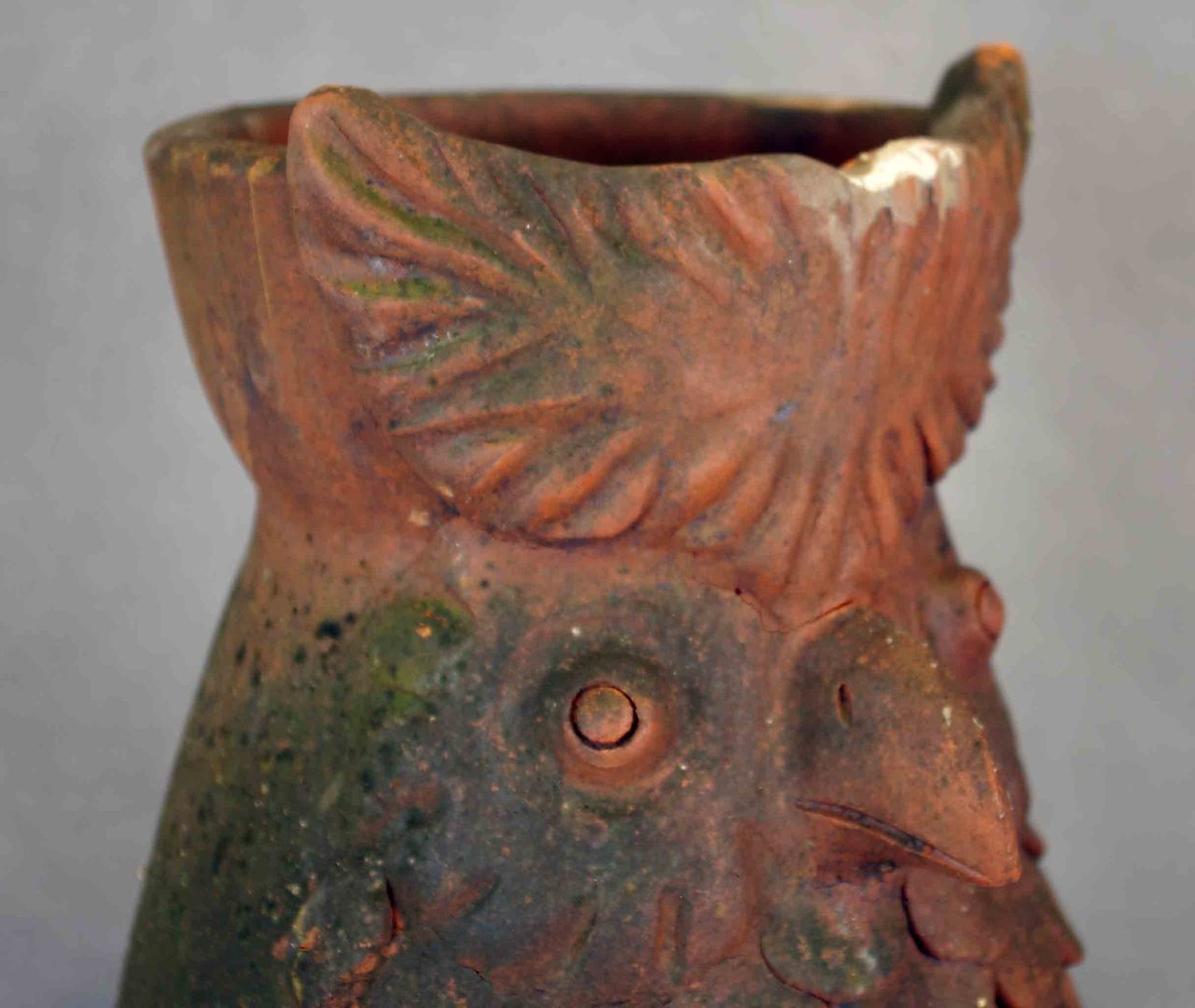 90765. GARTENVASE in Form einer Eule, Terrakotta.