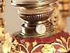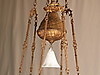 Petroleum-Deckenlampe - bauchiger Petroleumbehälter aus polychrom
