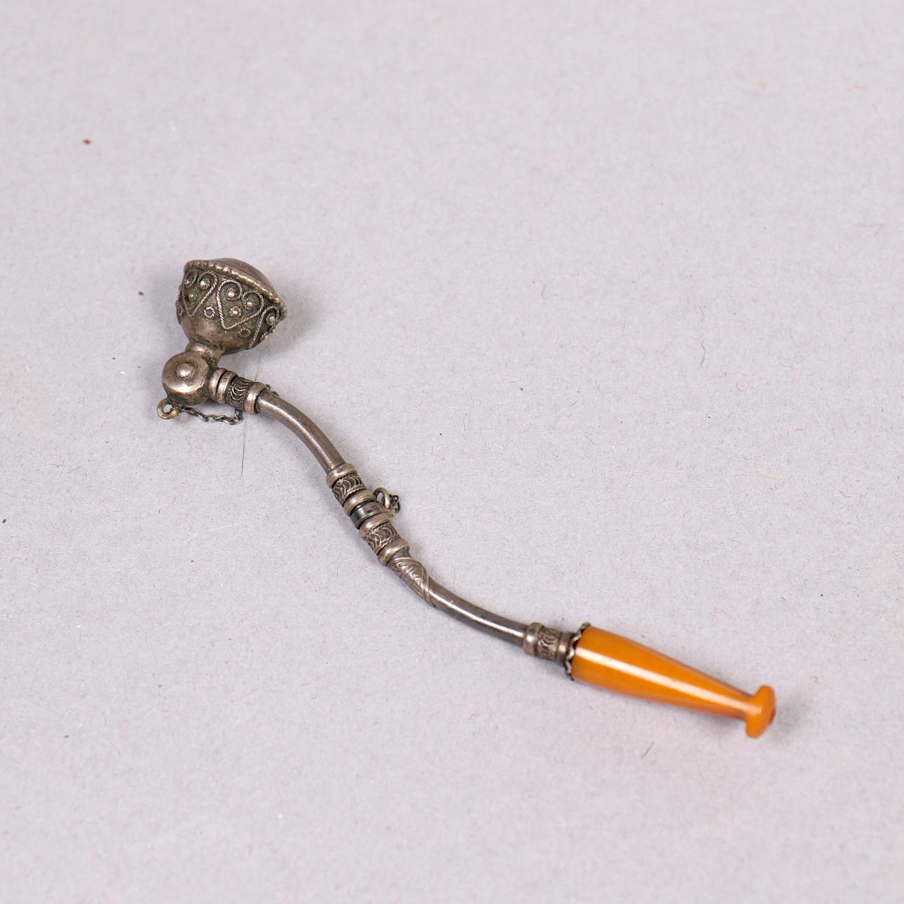 919116. MESSER, orientalisch, PIPA, mit Bernstein, 20. Jahrhundert.