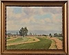 Landschaft mit Häusern. Signiert und datiert -28. 30 x 40 cm.
