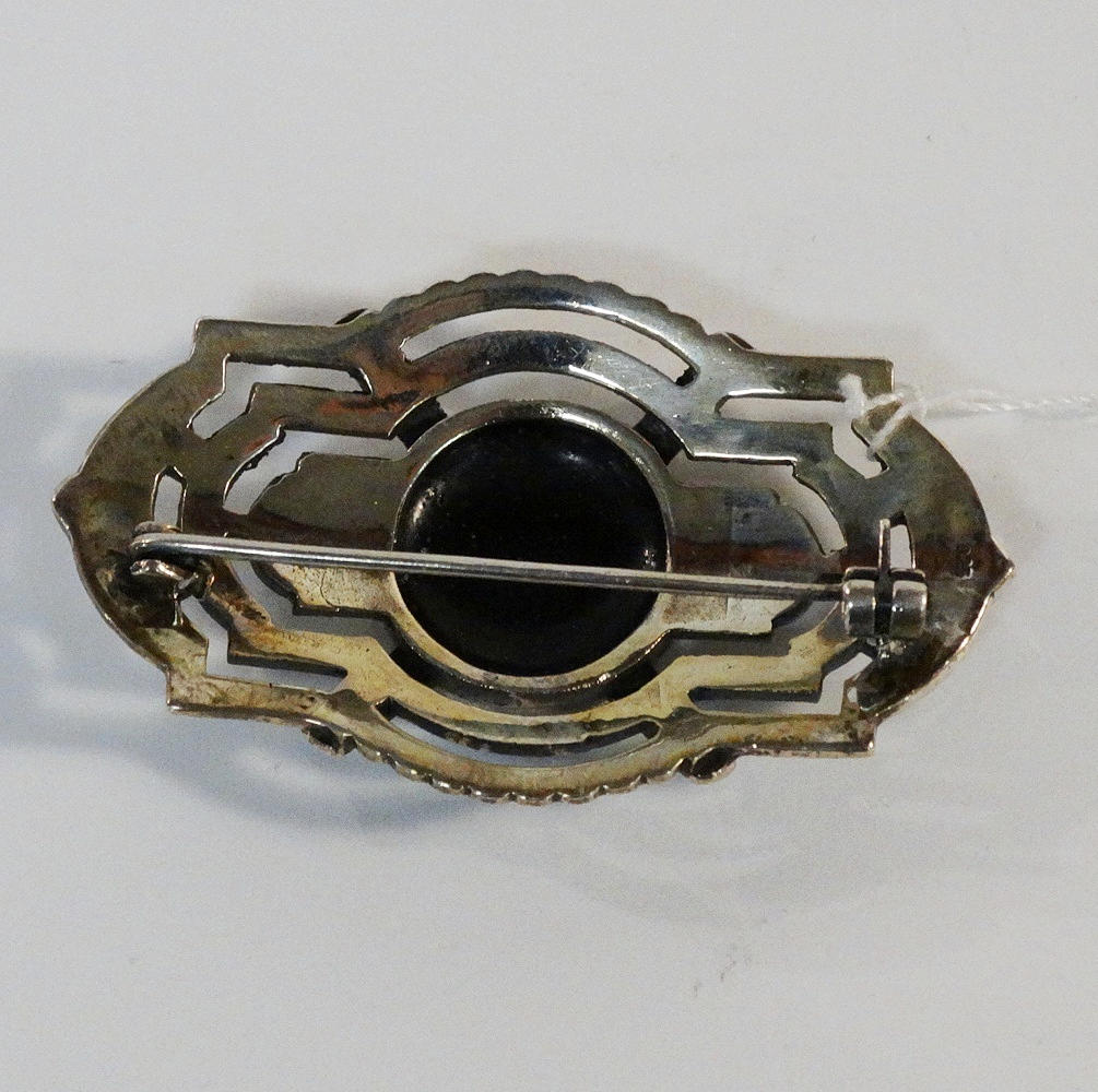 927205. ART DECO BROSCHE, ONYX MARKASITEN.
