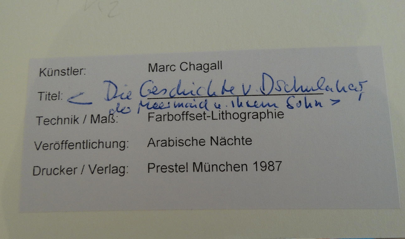 Chagall, Marc (1887-1985), Arabische Nächte, Farboffset, etwa 24 x 31 cm, Passepartout etwa 40 x 50 cm. München, 1987.