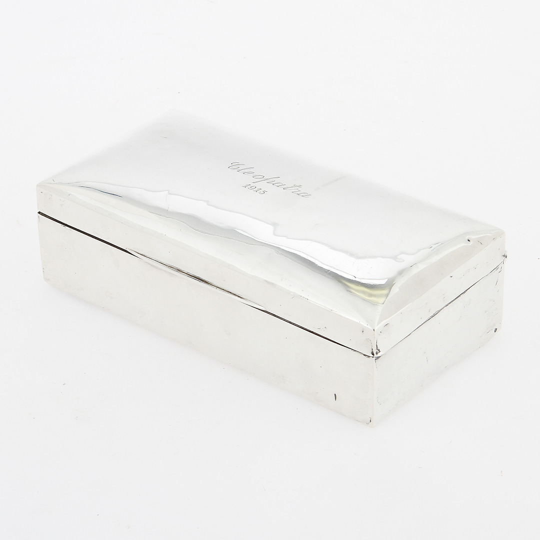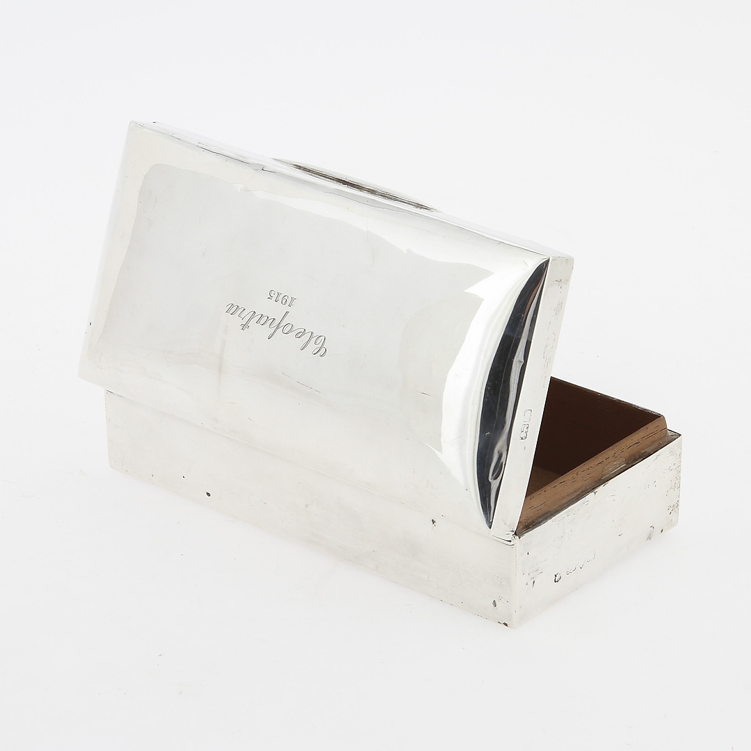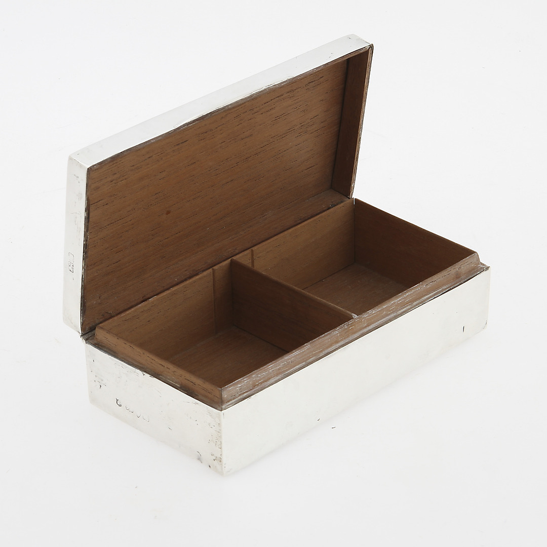 93759. BOX, Silber, England, undeutliche Briefmarken.