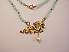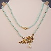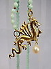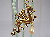 Es trägt als Mittelteil einen reliefierten, geflügelten Drachen, der die flammende Perle, eine ebenmäßige weiße Zuchtperle bewacht. Der Glücks-Drache ist an zwei weißen Zuchtperlensträngen angebracht, die durch einen Federring-Verschluss geöffnet werden können.