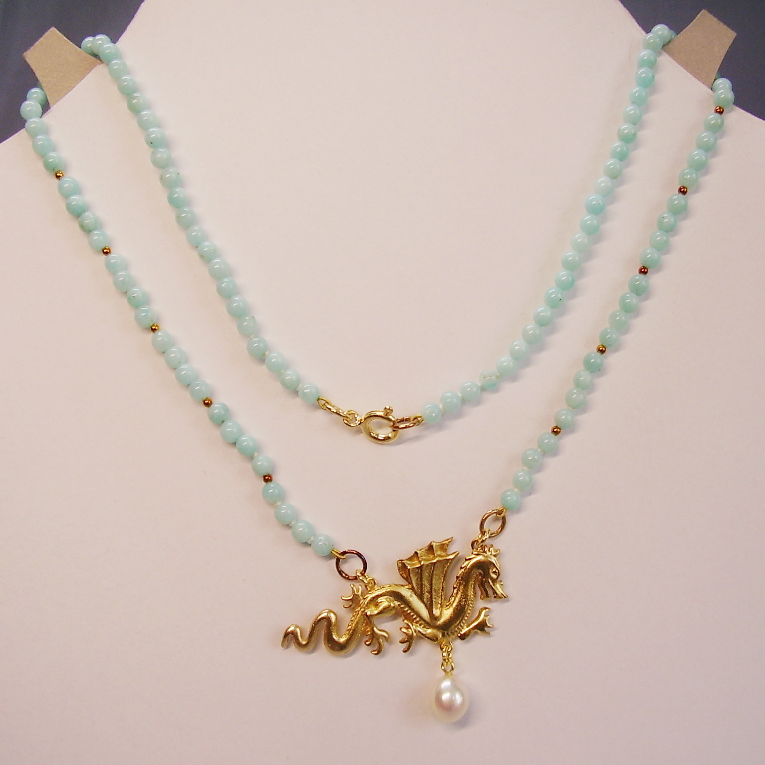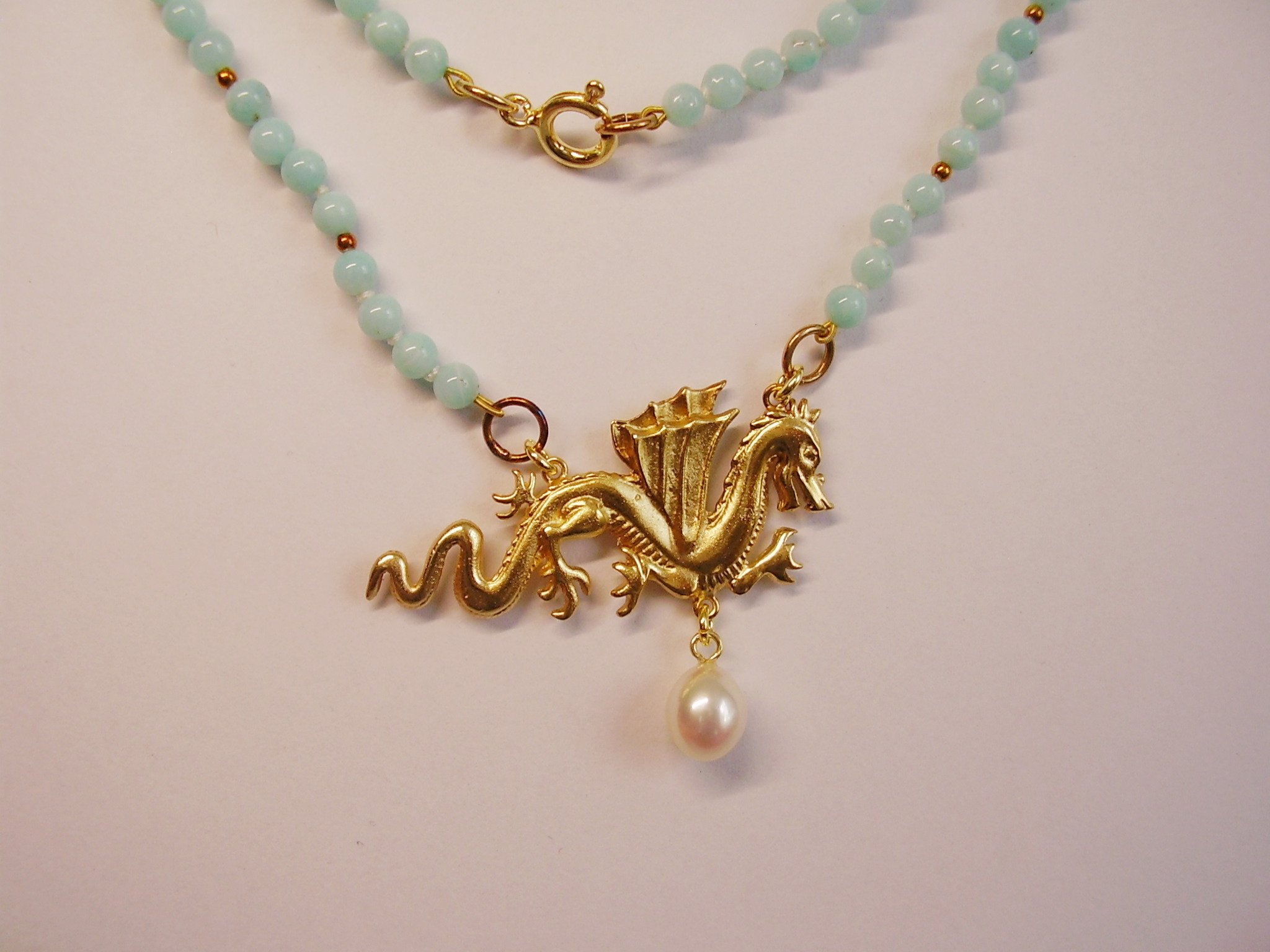 937743. AMAZONIT COLLIER MIT GLÜCKSDRACHEN.