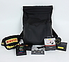 Rucksack, batteriebetriebener Bluetooth-Lautsprecher, Bluetooth-Headset, Mütze, Gummiarmbänder/Telefonhalter und F1-Modellauto.