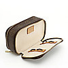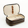 Leinwand mit Monogrammmuster. Details aus gelbem Metall. Zwei abschließbare Fächer. 17 x 10 x 6 cm.