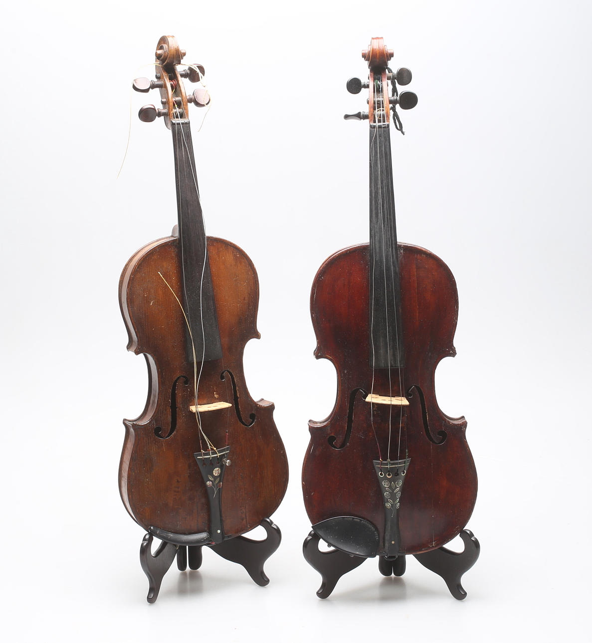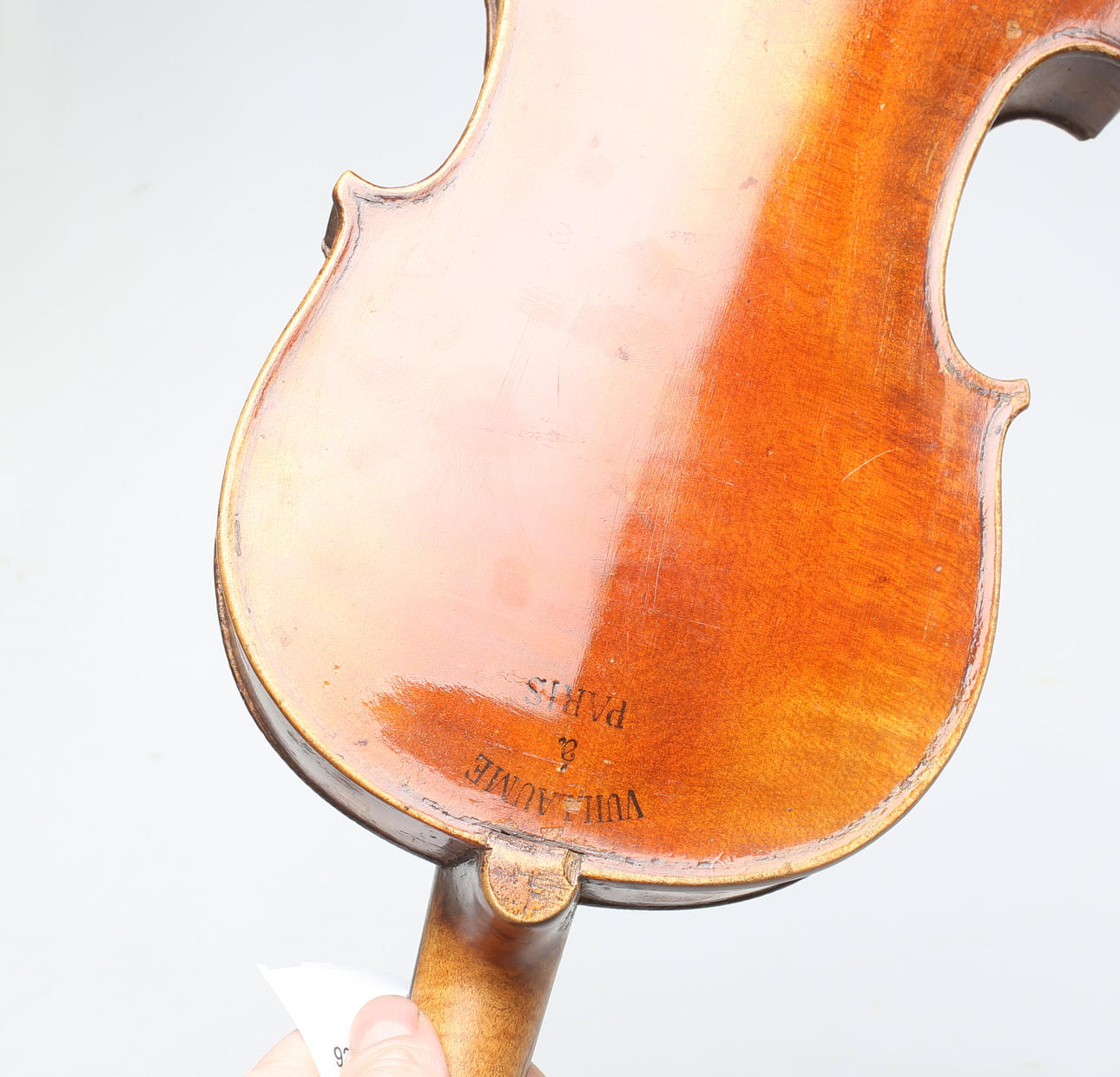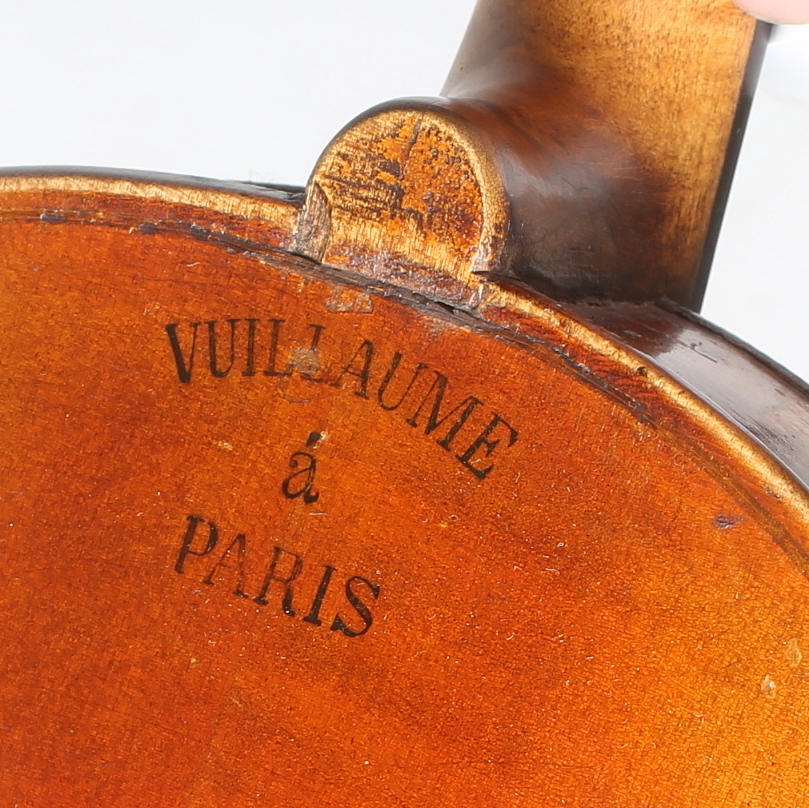 GEIGEN, 2 Stück, eine gemarkt Vuillaume á Paris.