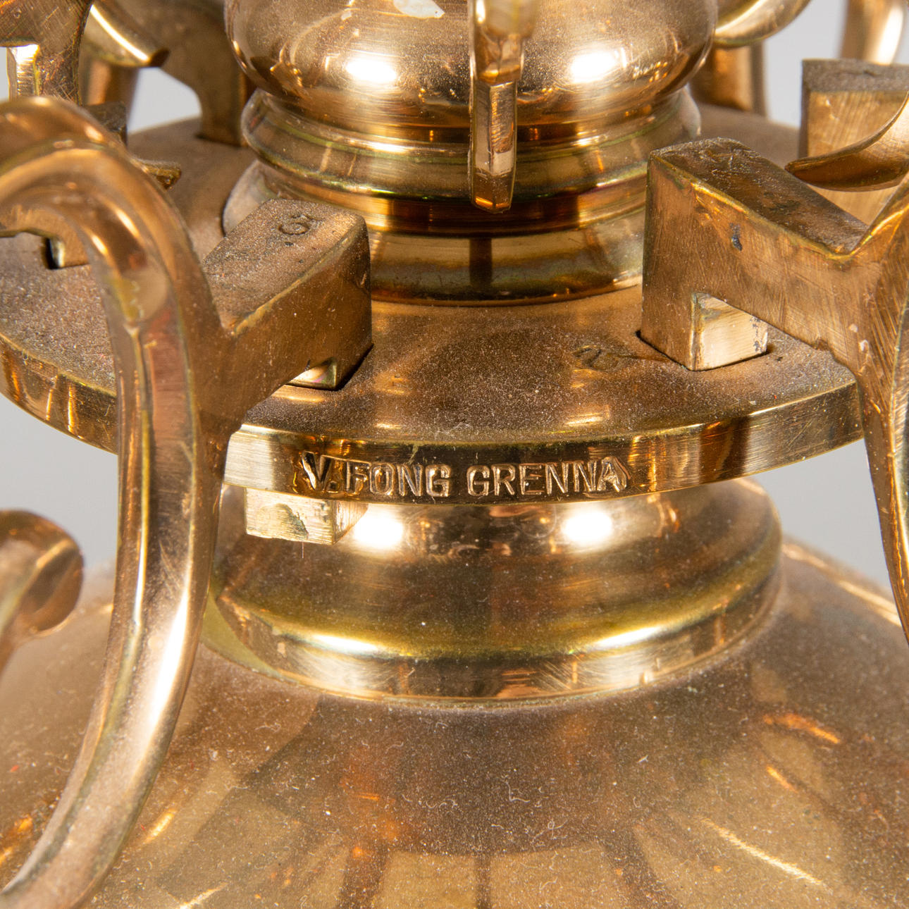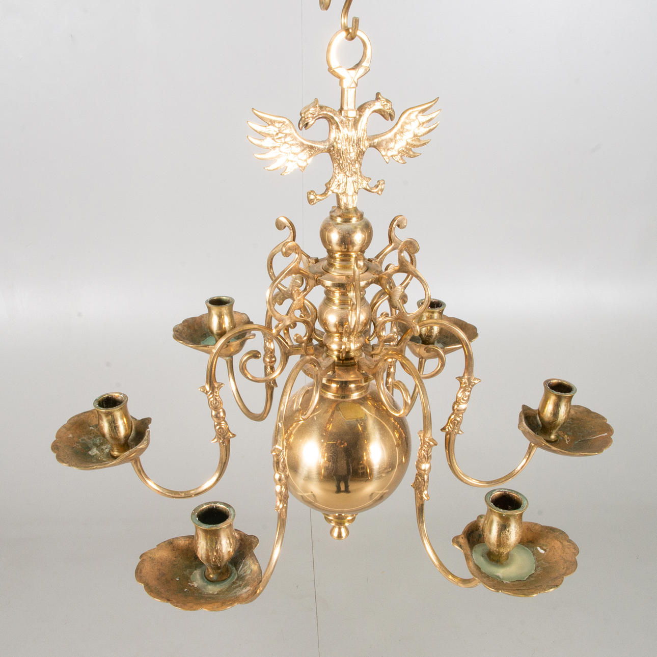 DECKENKRONE, 6-armig, Messing, V. Fong, Gränna.
