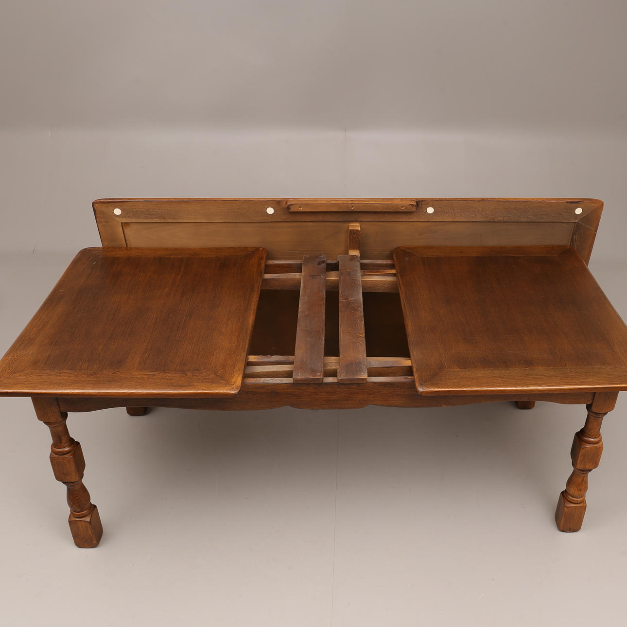 Tischhöhe ca. 76 cm, Platte ca. 200 x 95 cm, 2 zusätzliche Platten je ca. 73 cm. Stuhlhöhe ca. 104 cm.