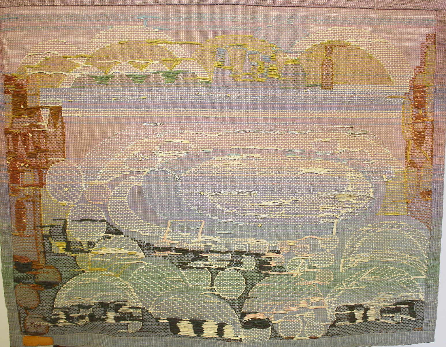 959600. KERSTIN PERSSON. Wandteppich, "Waiting" signiert KP.