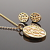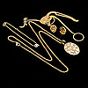 Halskette und Ohrringe von Bvlgari aus gelbem Metall mit Perlmutt Länge der Halskette ca. 62 cm Armband aus gelbem Metall mit Simulanten, hergestellt von Baumgarten Di Marco Länge ca. 19 cm Halskette aus gelbem Metall mit Ring, hergestellt von Baumgarten Di Marco Länge 66 cm.