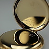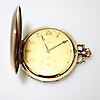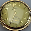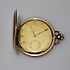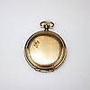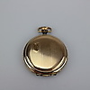 Taschenuhr mit Handaufzug der Marke Junghans, 1930er Jahre. Seriennummer: 461215 Beschriftung im Rückendeckel: GOLD-DOUBLÉ, GARANTIE 20 JAHRE. Ziffernblatt 40mm Durchmesser. Gesamtdurchmesser: 50mm.