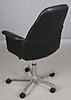 Schwarzes Leder. Rückenlehne, Sitz und Rahmen gepolstert. Sternförmiger Sockel aus Stahl. Auf Rädern.
