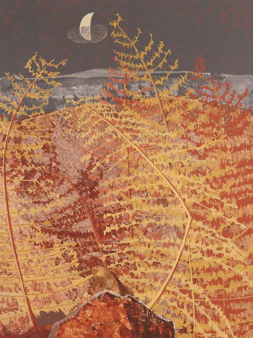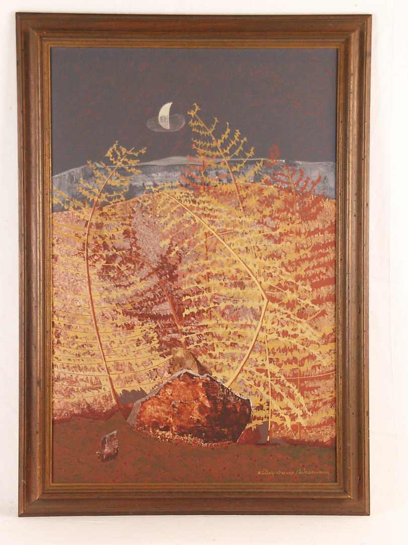 971174. RUDOLF WERNER ACKERMANN. "Goldfarn", Öl auf Faserplatte.