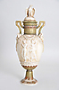 Keramik, umlaufend plastischer Dekor. Deckel mit Adler, partiell bemalt.