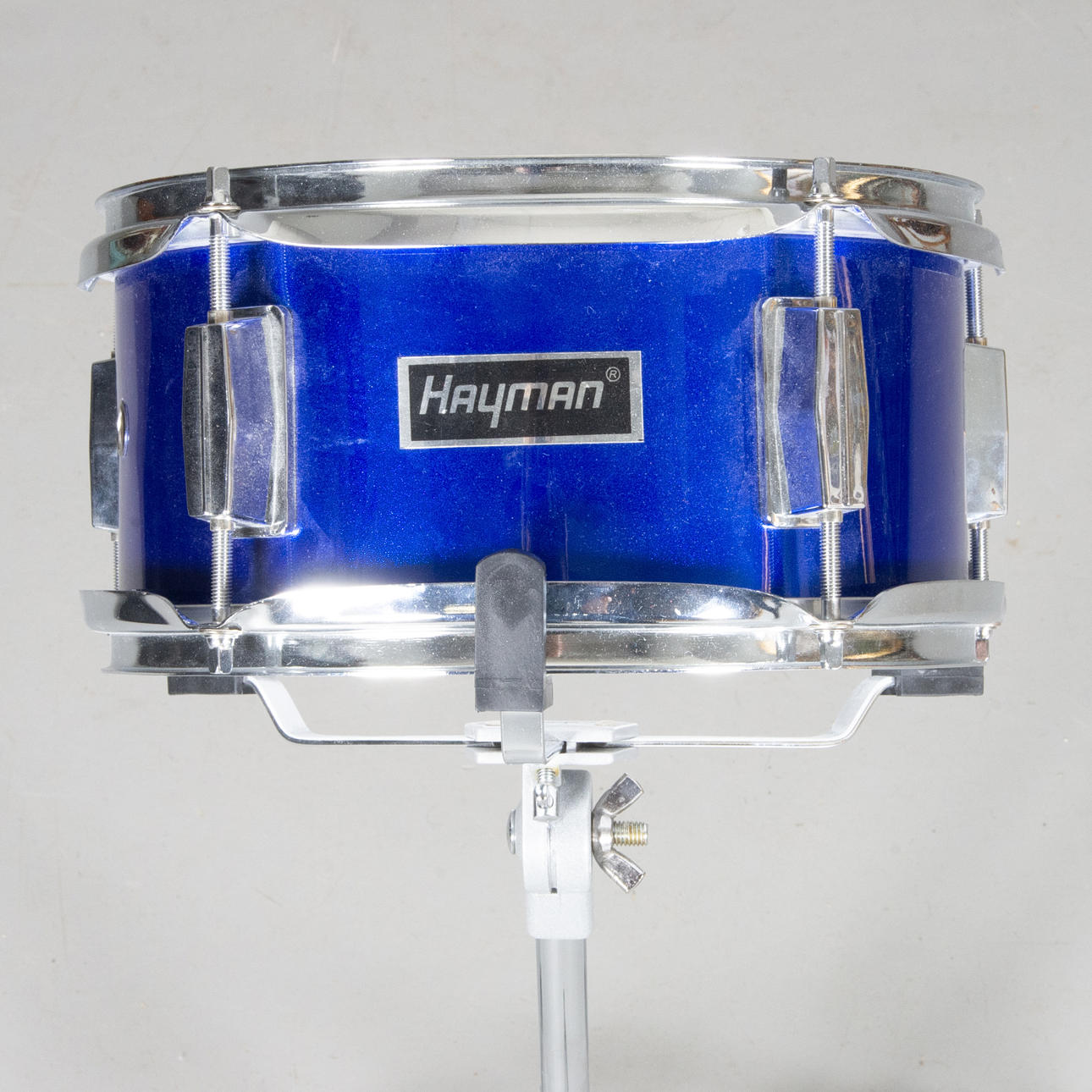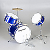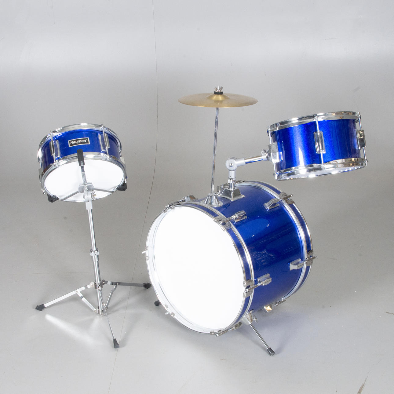 3 Trommeln und Becken mit Stöcken und Pedal, große Trommel Durchmesser 45, Breite 37 cm.