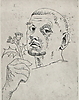 983087. GERHARD KARLMARK. SELBSTBILDNIS MIT DISTEL.