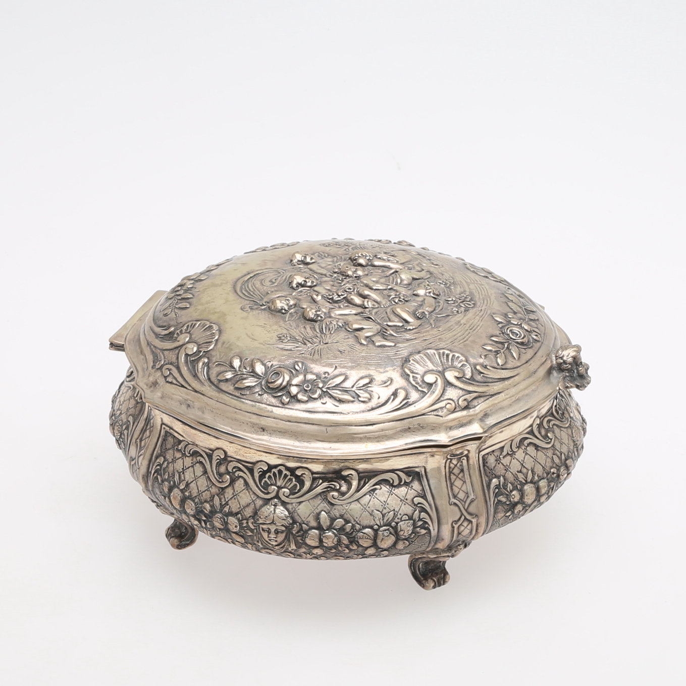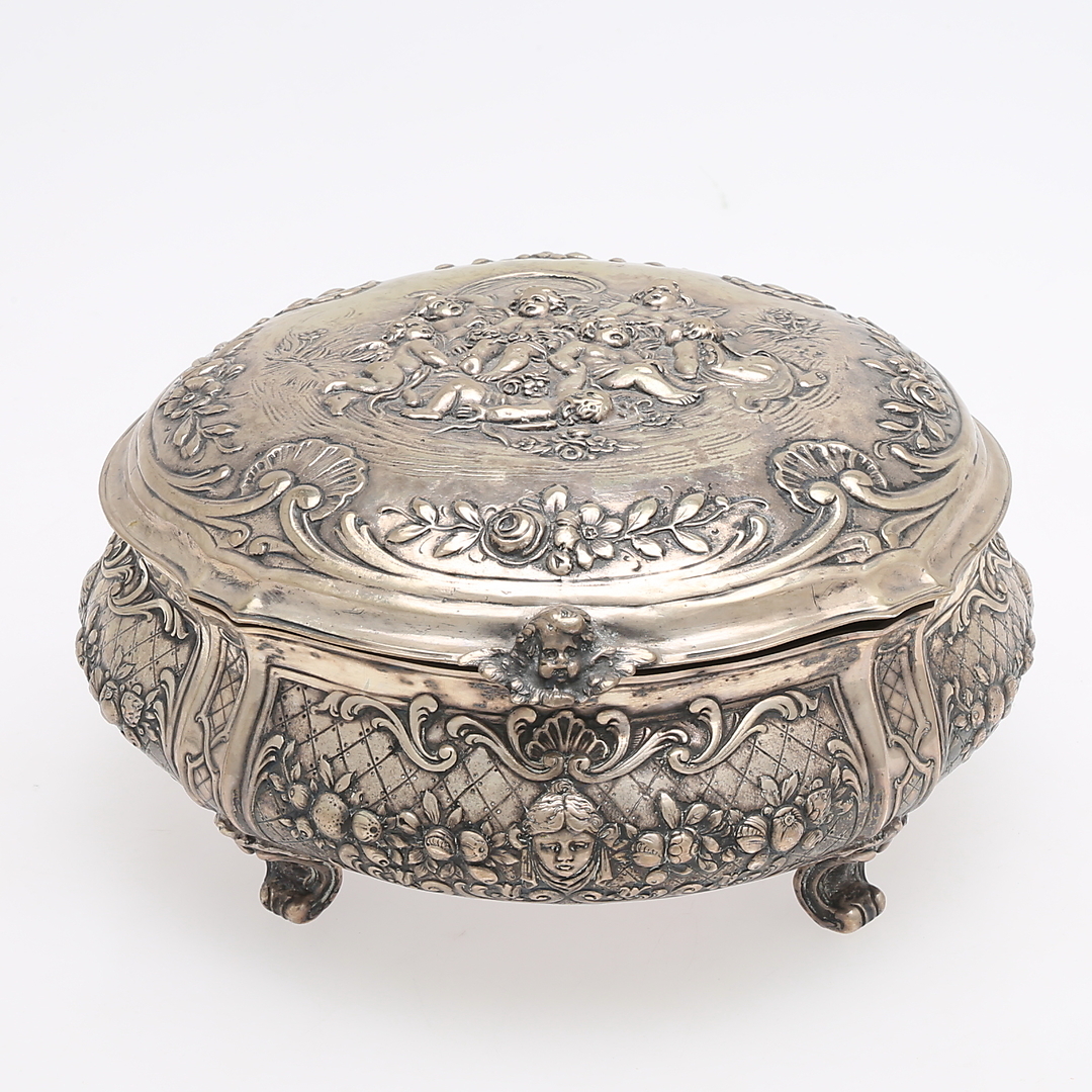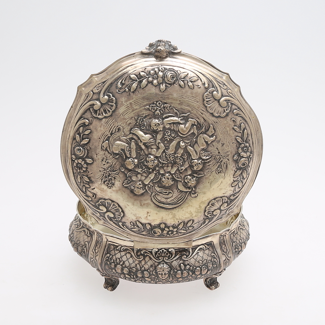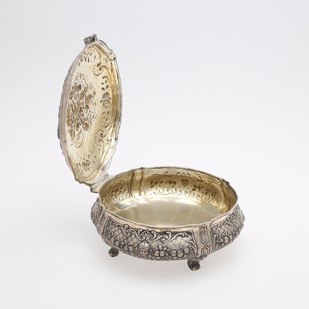 984866. DOSE, ROKOKO-STIL, Silber mit getriebenem Dekor.