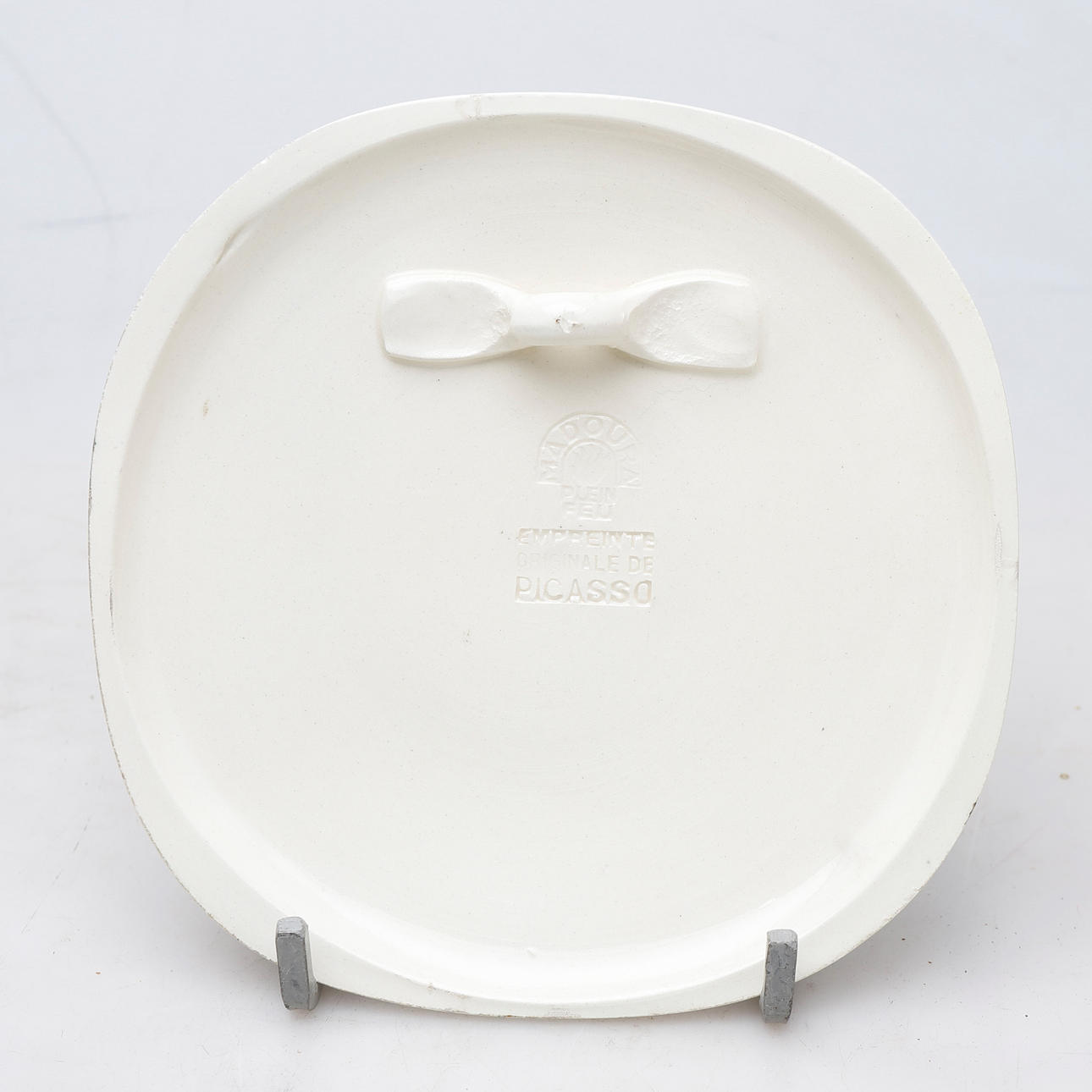 Scheibe aus Steingut Madura-Ausgabe. Modell von 1956. Madoura-Stempel "Plein feu" "Empreinte originale de Picasso" 18,8x18,8 cm.