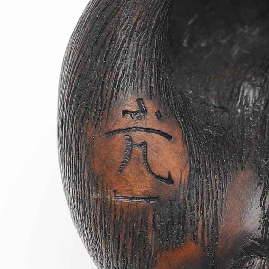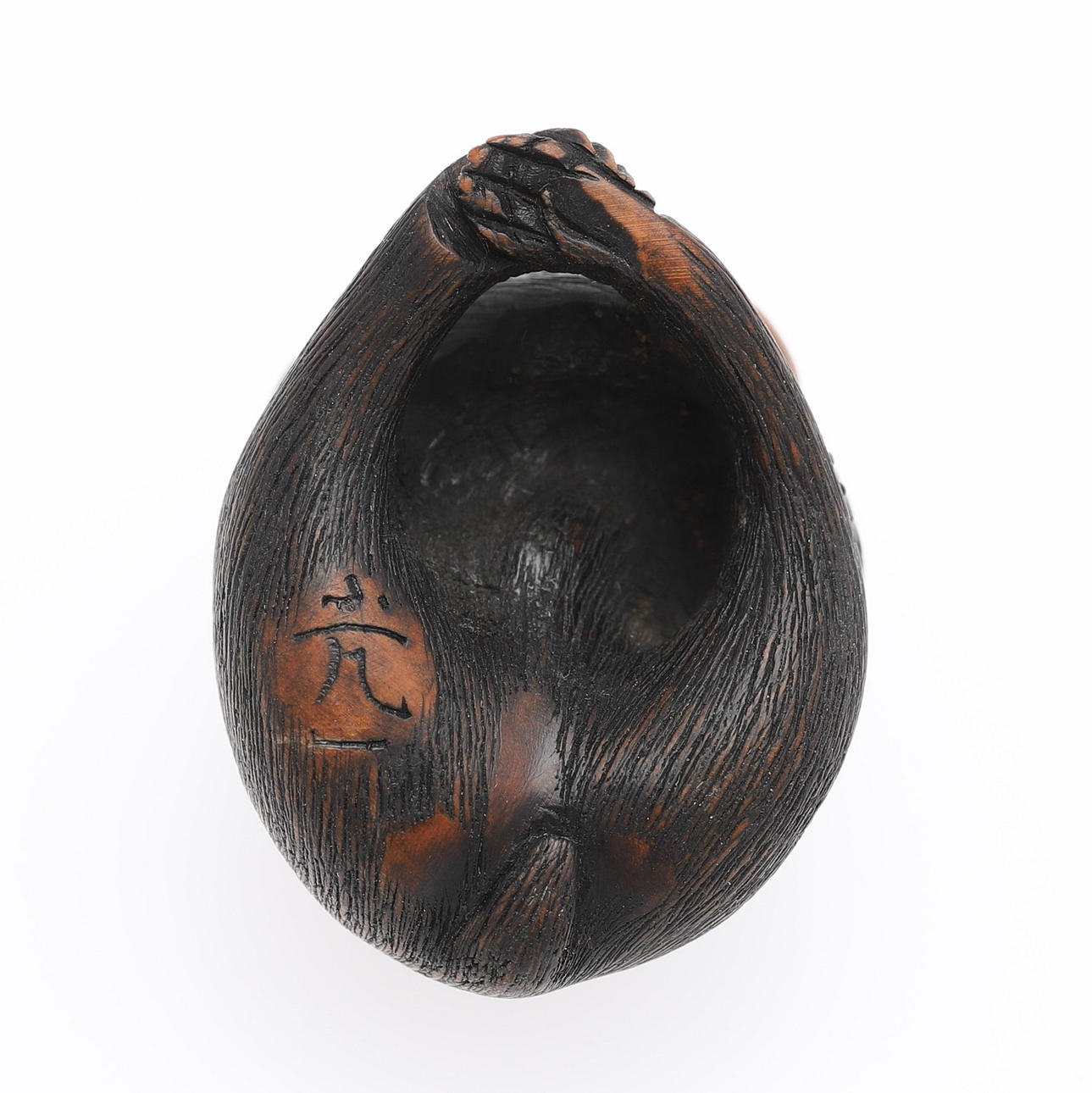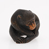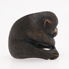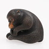 In Form eines sitzenden Makaken, aus Buchsbaum geschnitzt, teilweise gebeizt, signiert Edo, 19. Jahrhundert, Höhe 3 cm.