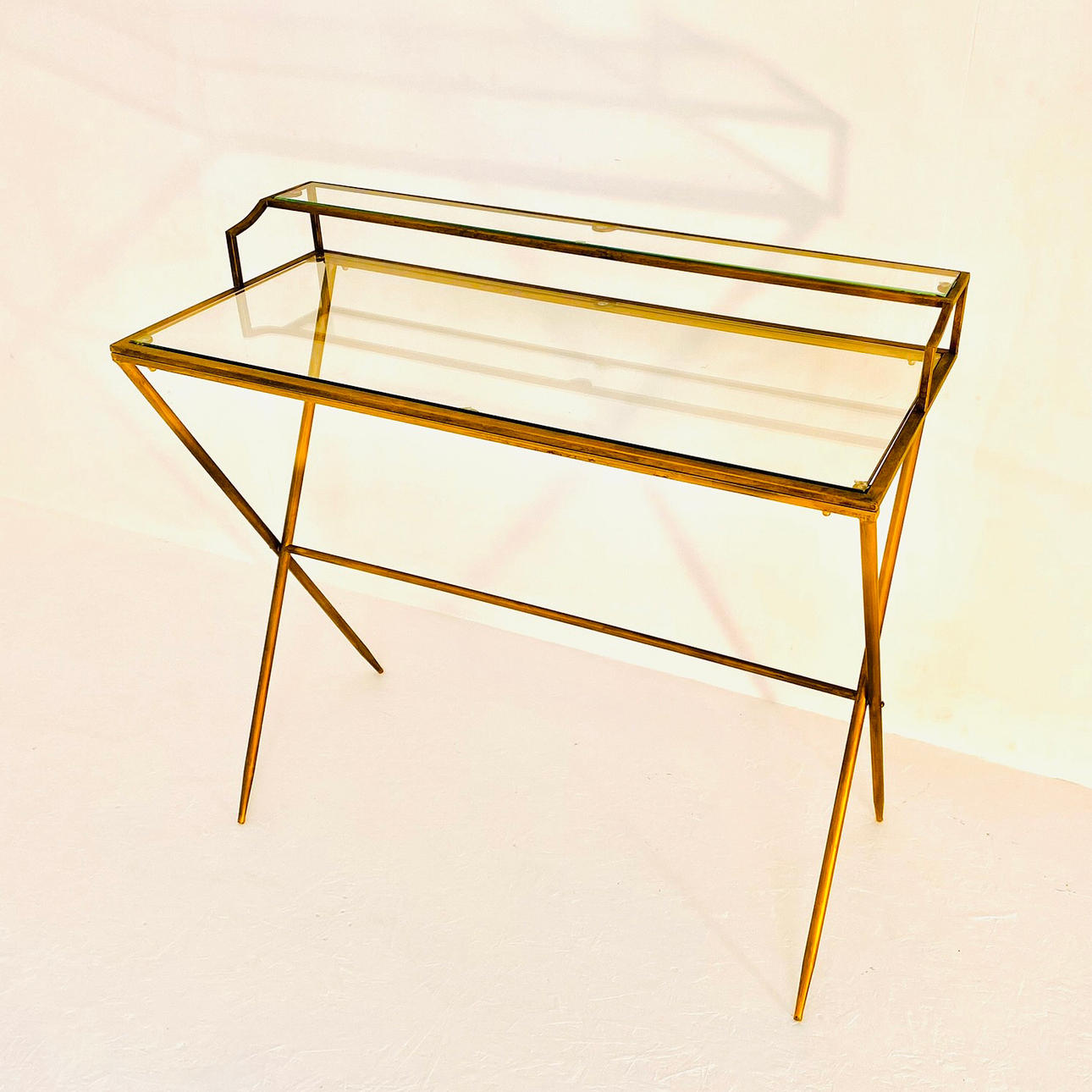 vergoldetes Metall und Glas, 87 cm H x 95 cm B x 42 cm T.
