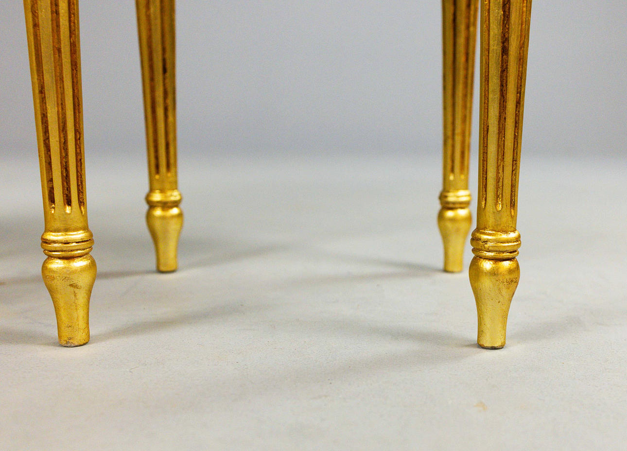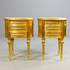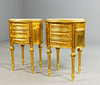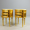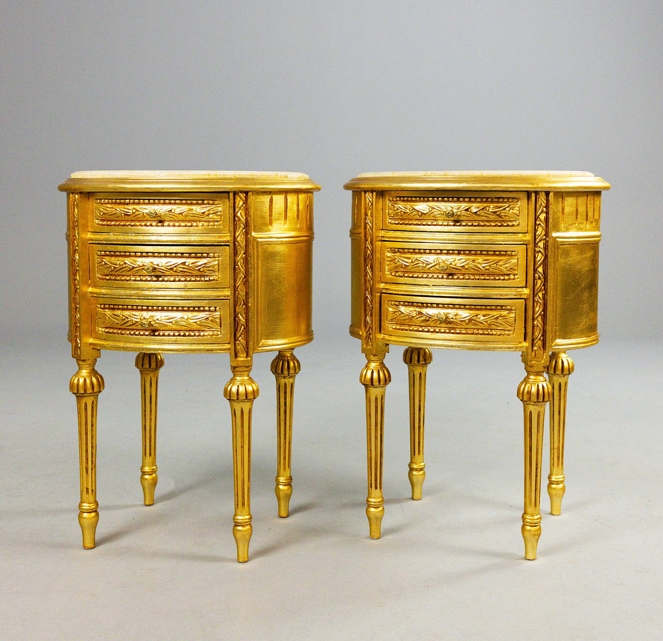 vergoldet bemalt, jeweils mit drei Schublade und einer Steinplatte, ca. 50 cm x 38 cm x 70 cm. (2).