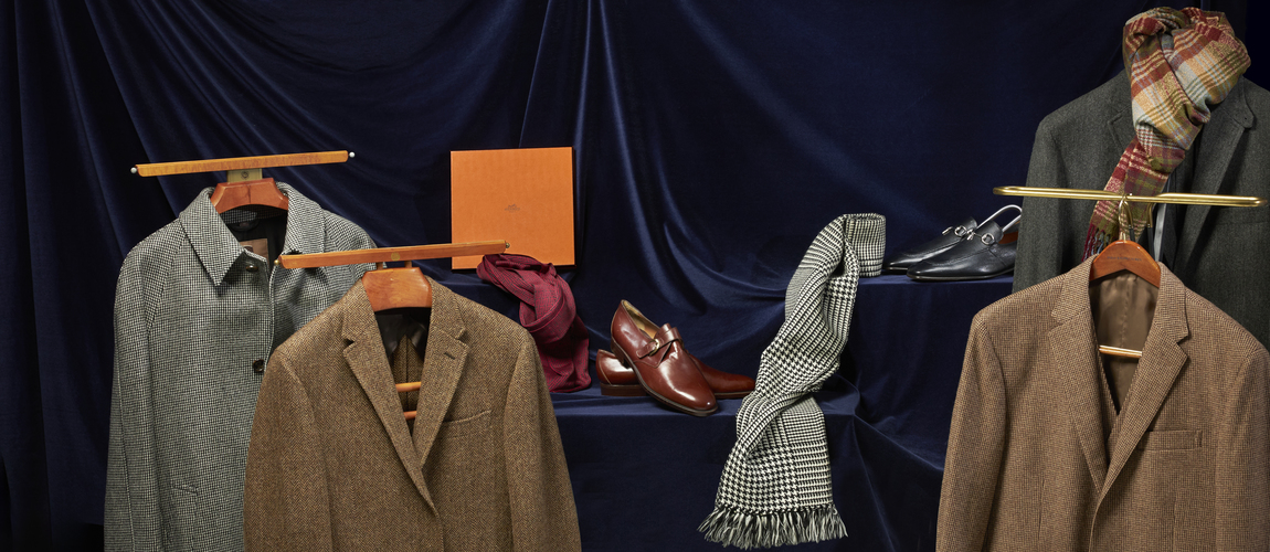 Explore an array of sophisticated blazers, overcoats, sturdy shoes, warming scarves, and wraps, along with shirts fit for those timeless conversations about global travels in a snug salon setting.