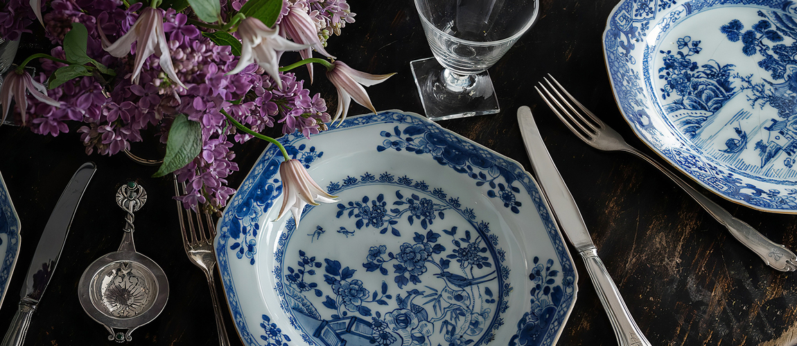The table is set once again at Auktionshuset Kolonn. All you need to do is take a seat and enjoy the delights on display. No inherited etiquette or lofty airs are required—quite the opposite! Here, diversity reigns supreme. How about a British silver tea caddy from 1835, adorned with genre motifs, placed next to a Chinese blue-and-white sauce boat from the 1700s? Or perhaps a coffee service by Gustaf Möllenborg, presented alongside a Venini vase?