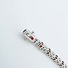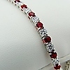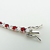 A silver line bracelet set with red and white cubic zirconia stones.