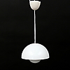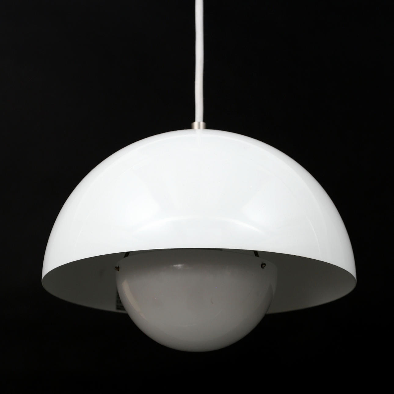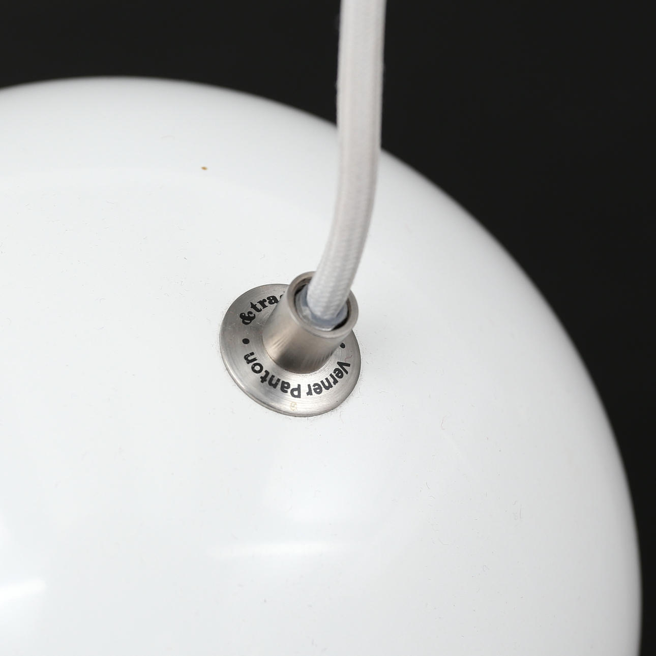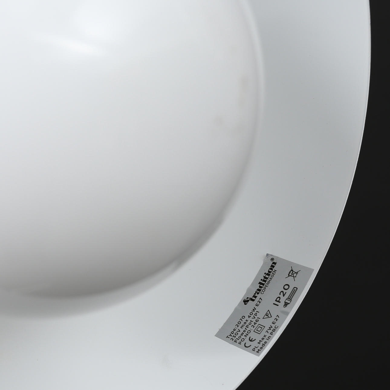 White lacquered metal, textile cord, screen height approx. 18 cm, diameter 23 cm.