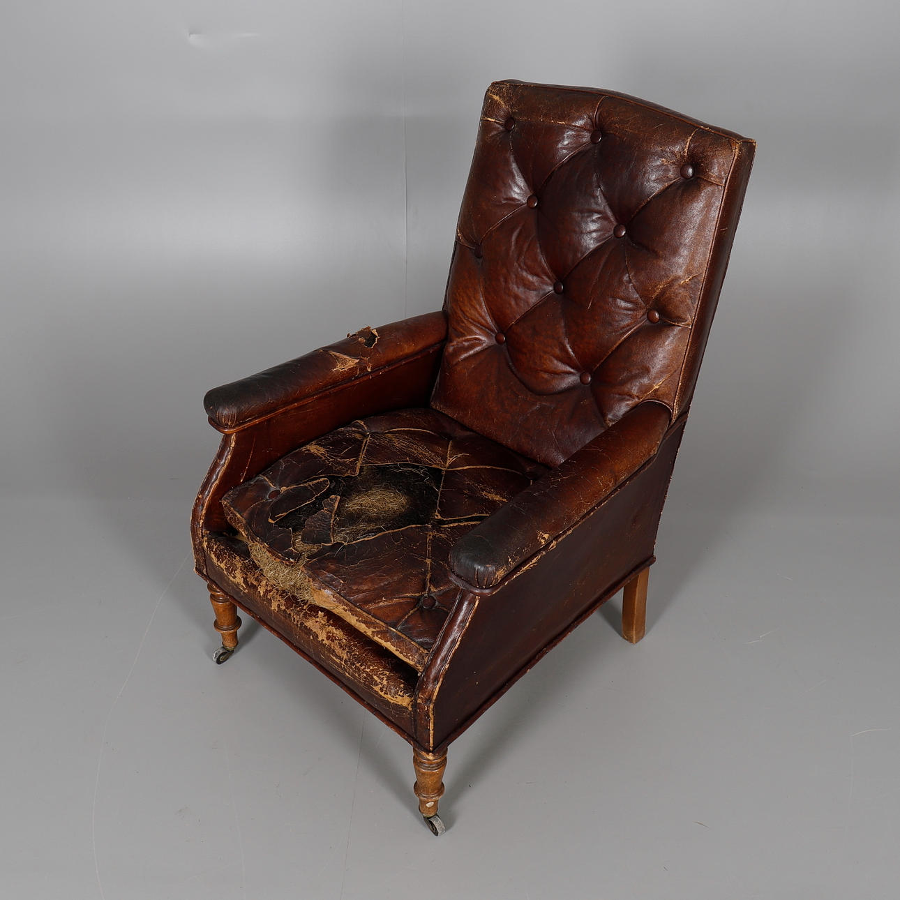 1013224. A VICTORIAN LEATHER UPHOLSTERED LIBRARY CHAIR.