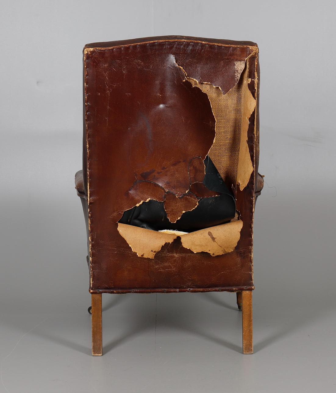 Marks, knocks, scratches and abrasions. Upholstery distressed, worn and torn throughout.