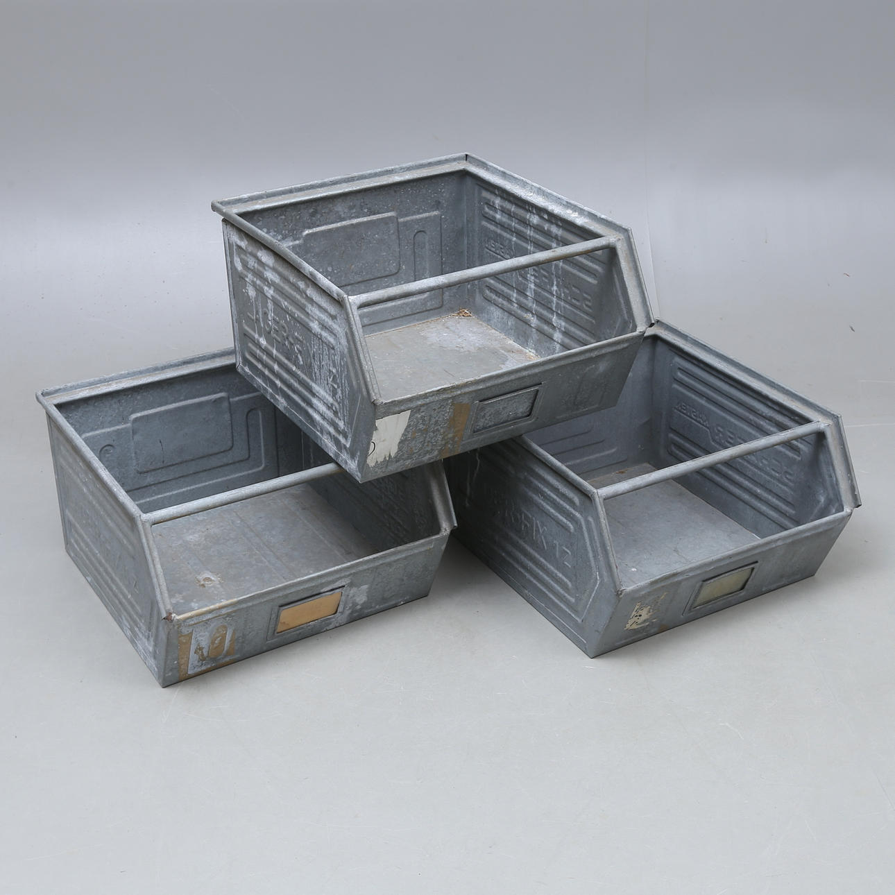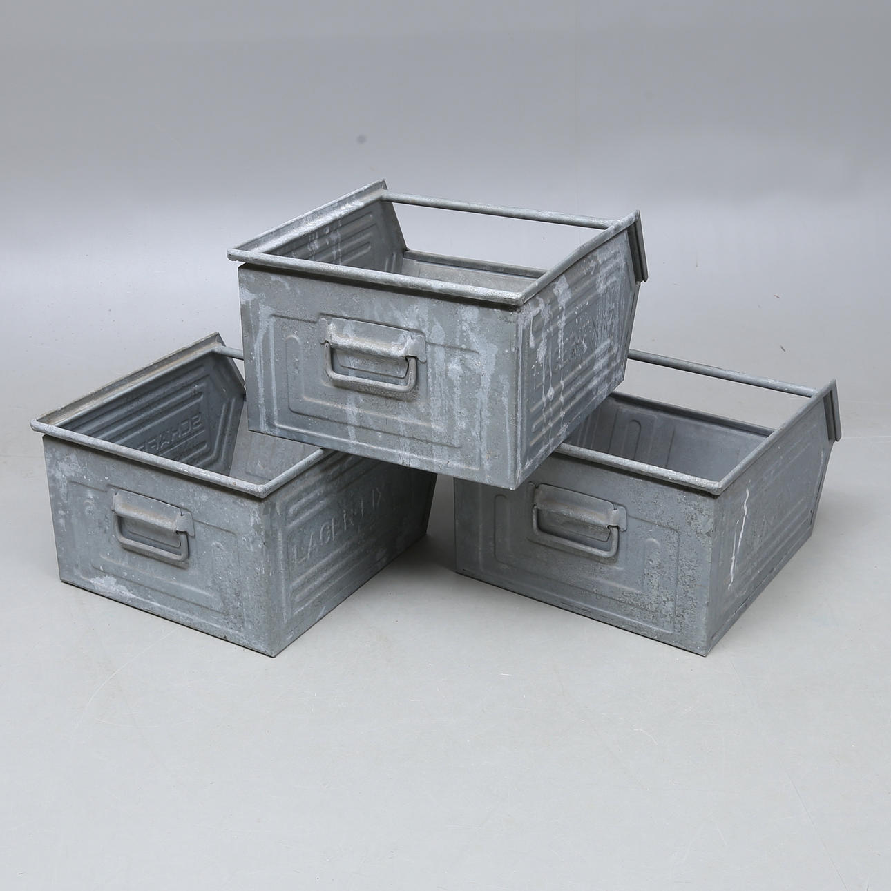 1013470. STORAGE BOXES, 3 pcs, zinc, "Schäfer Kästen", 1900s.