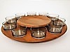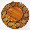 Rotatable tray in teak with 10 glass bowls, Branded Dia 47 cm.
