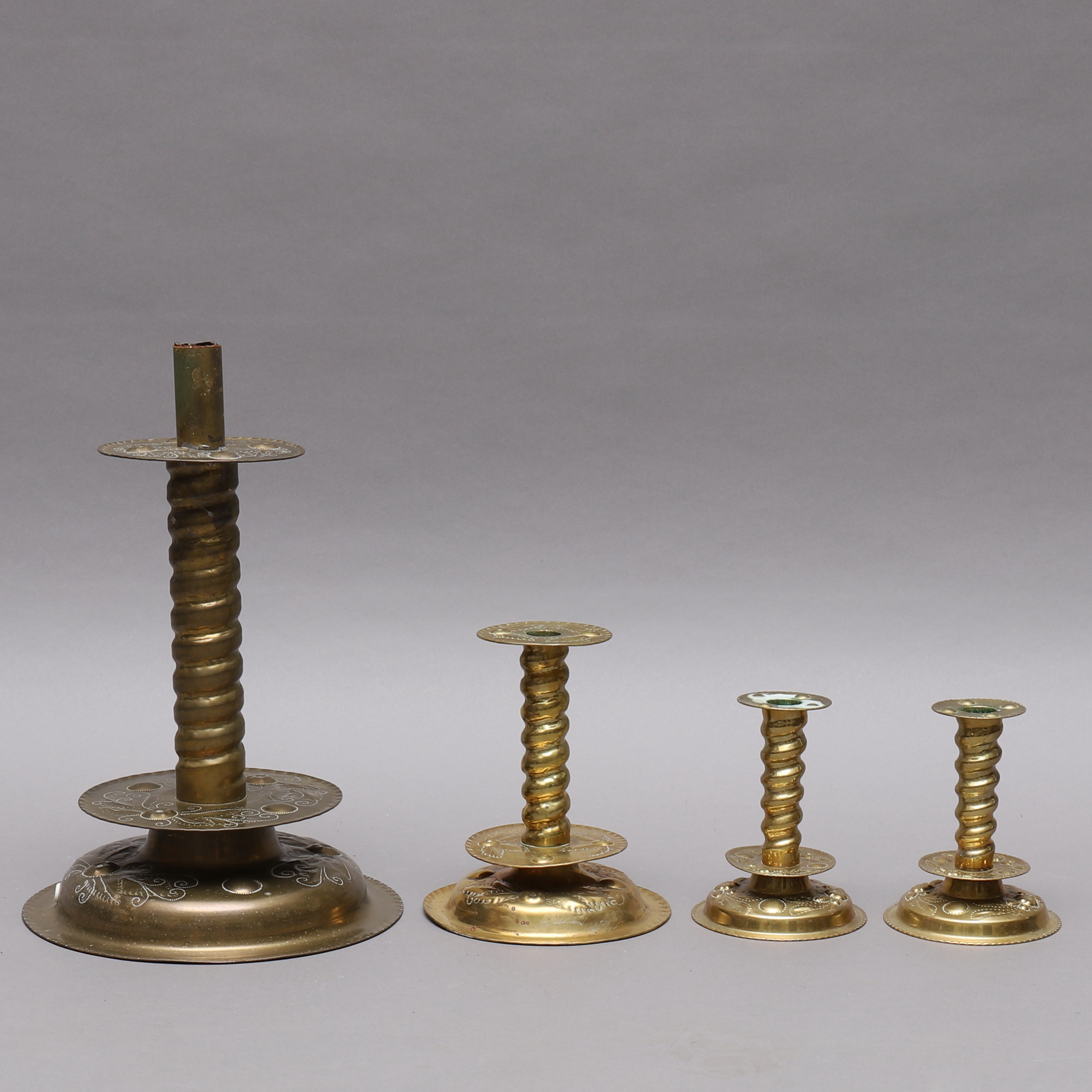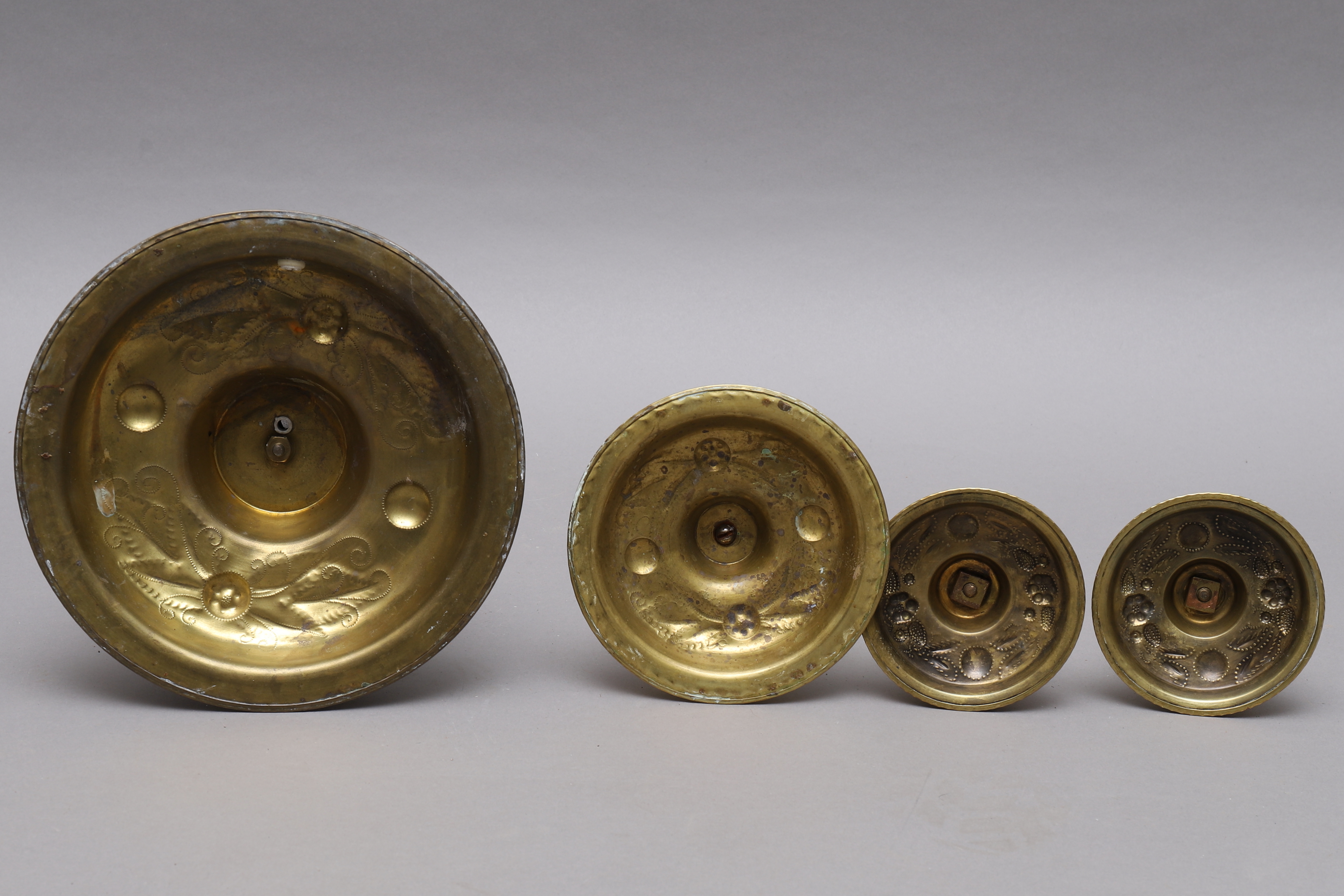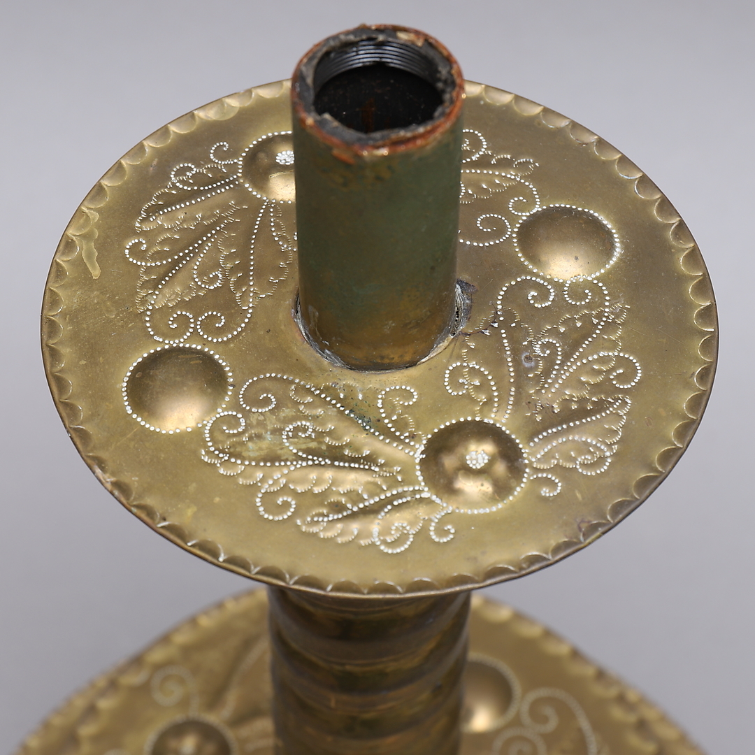 1013780. CANDLE STICKS, 3 pcs., LAMP BASE, brass.
