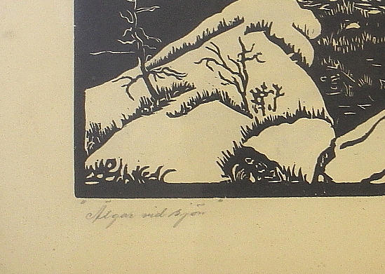 1016839. HENRY A OLSSON. original cut "Elks by the lake" signed, dated -34.