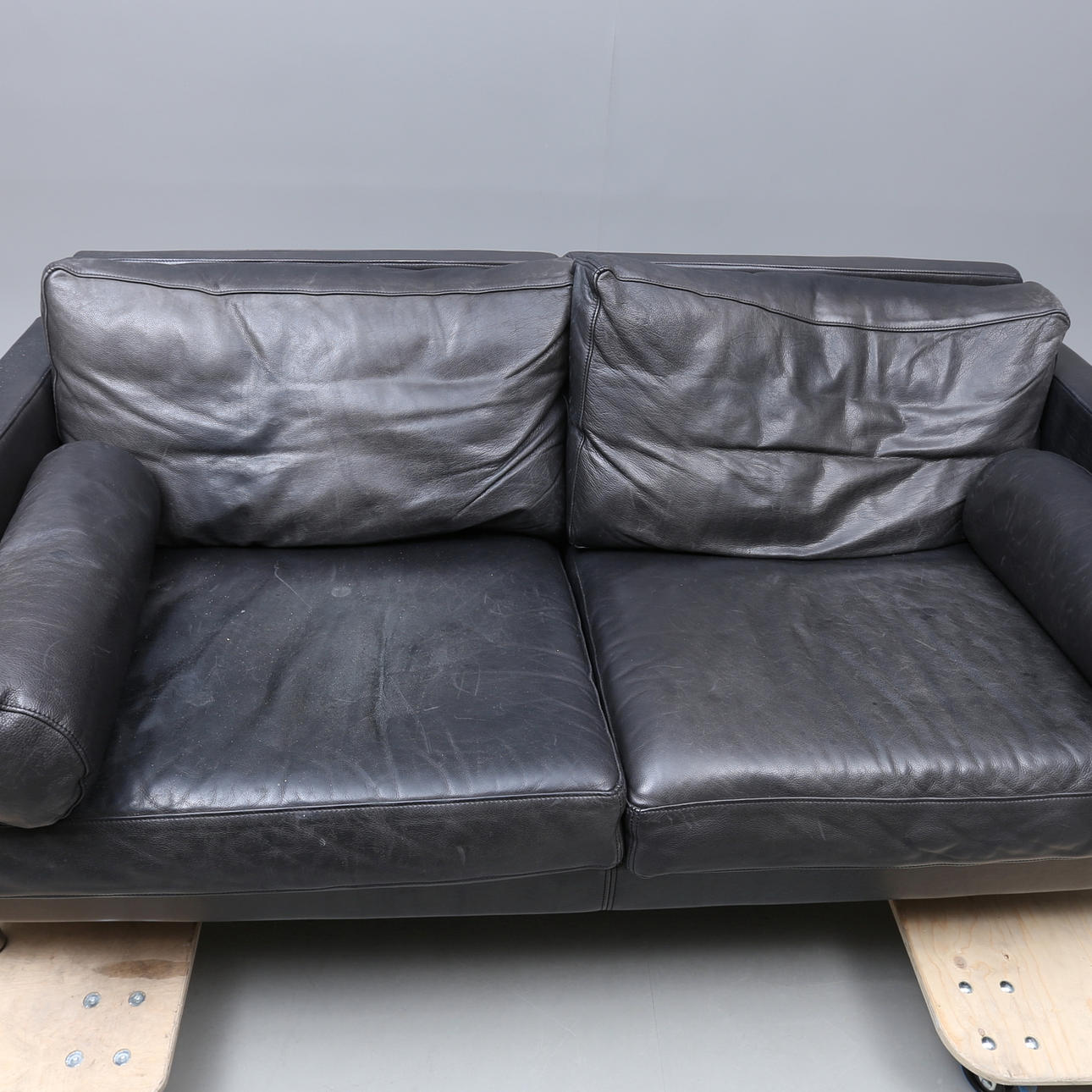 Leather upholstery, length 180, depth 90, seat height 40.