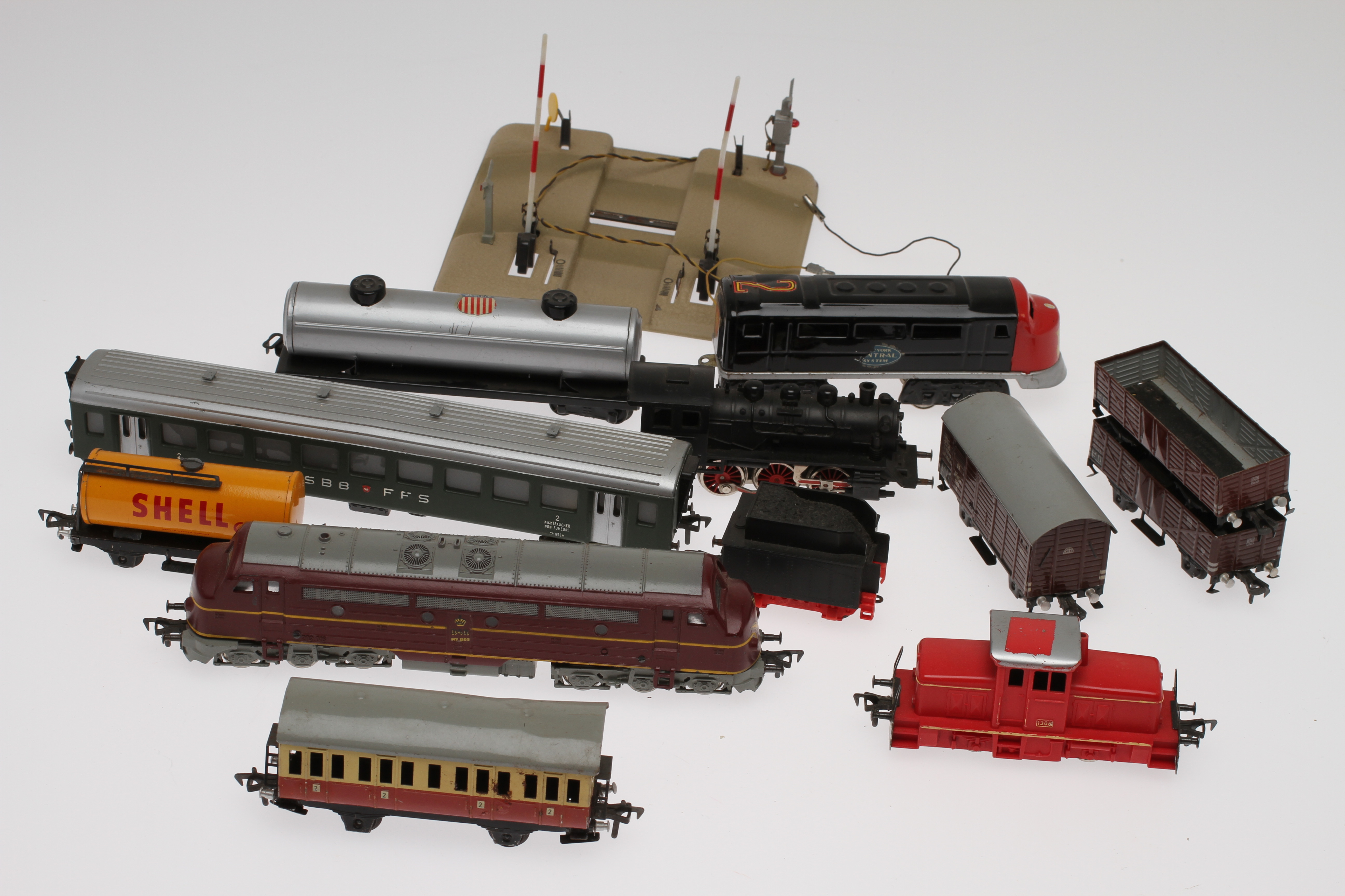 10307. FLEISCHMANN TRAIN scale H0. 2 Diesel locomotives, steam locomotives, 6 carriages.