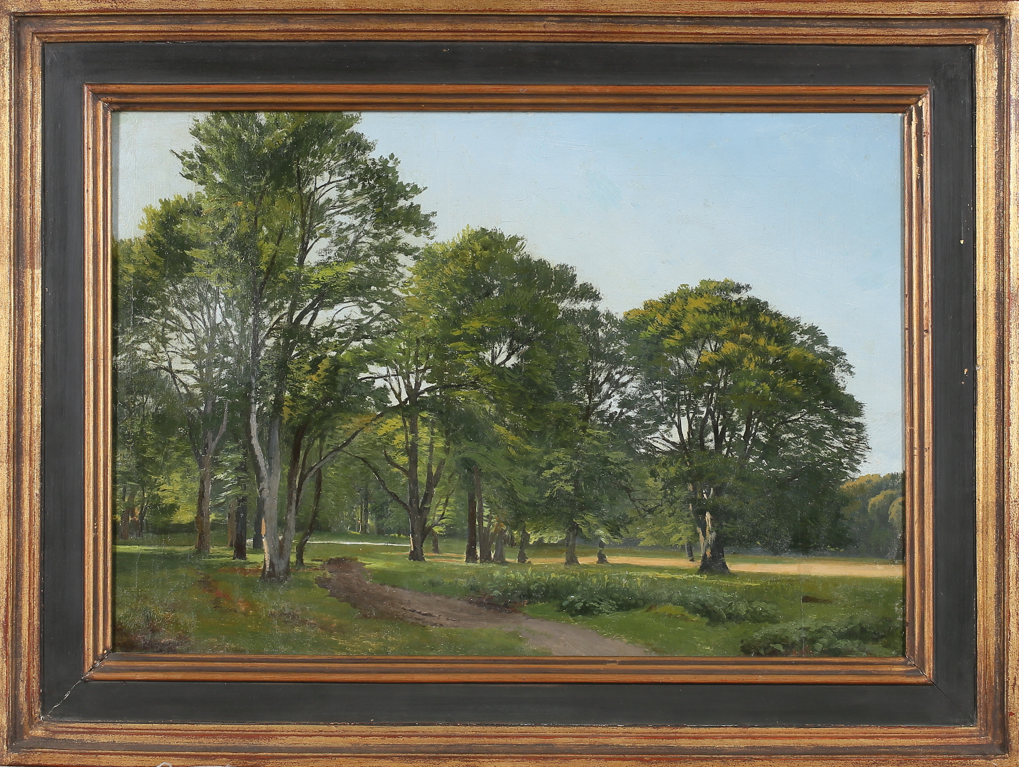 1043668. ATTRIBUTED TO ANDERS KALLENBERG. Summer landscape, oil on masonite, unsigned.