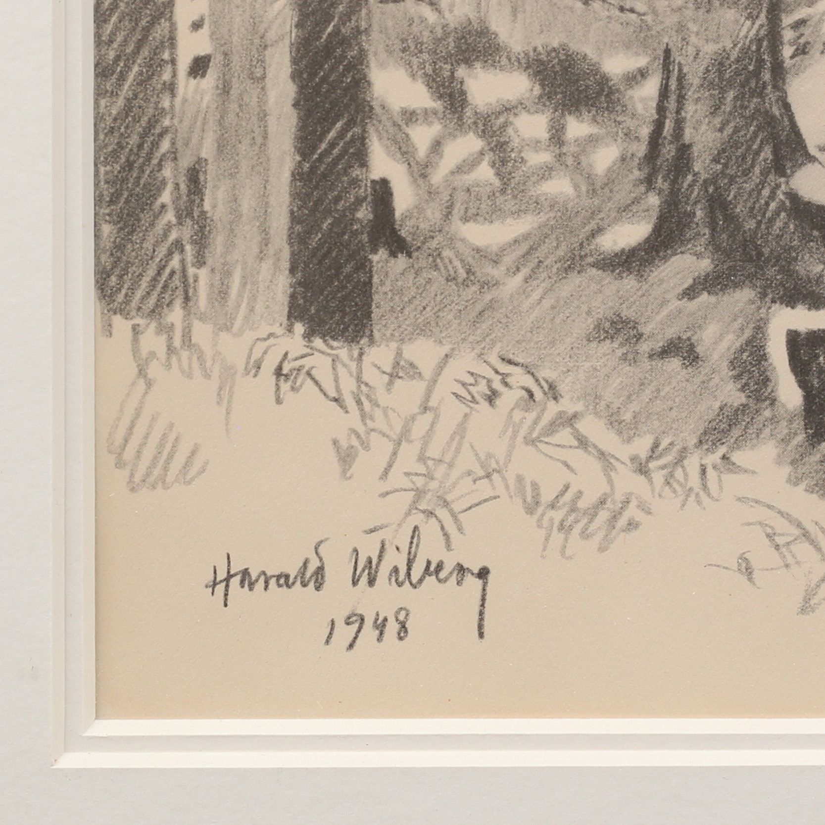 1045936. HARALD WIBERG. Herds in forest, offset print, signed in the print.